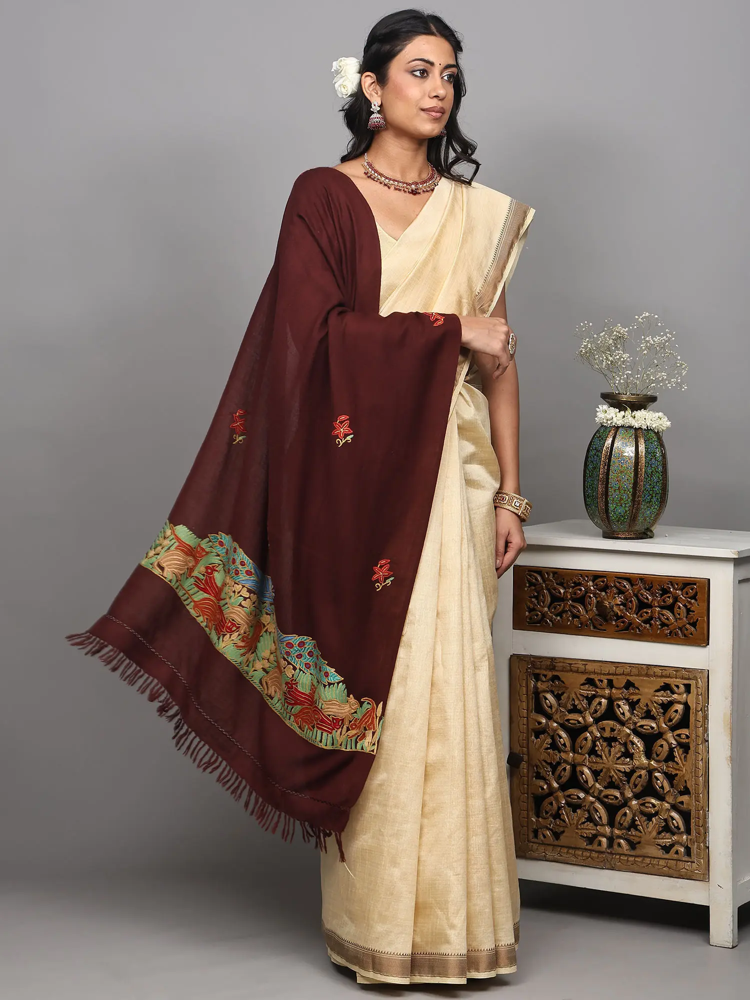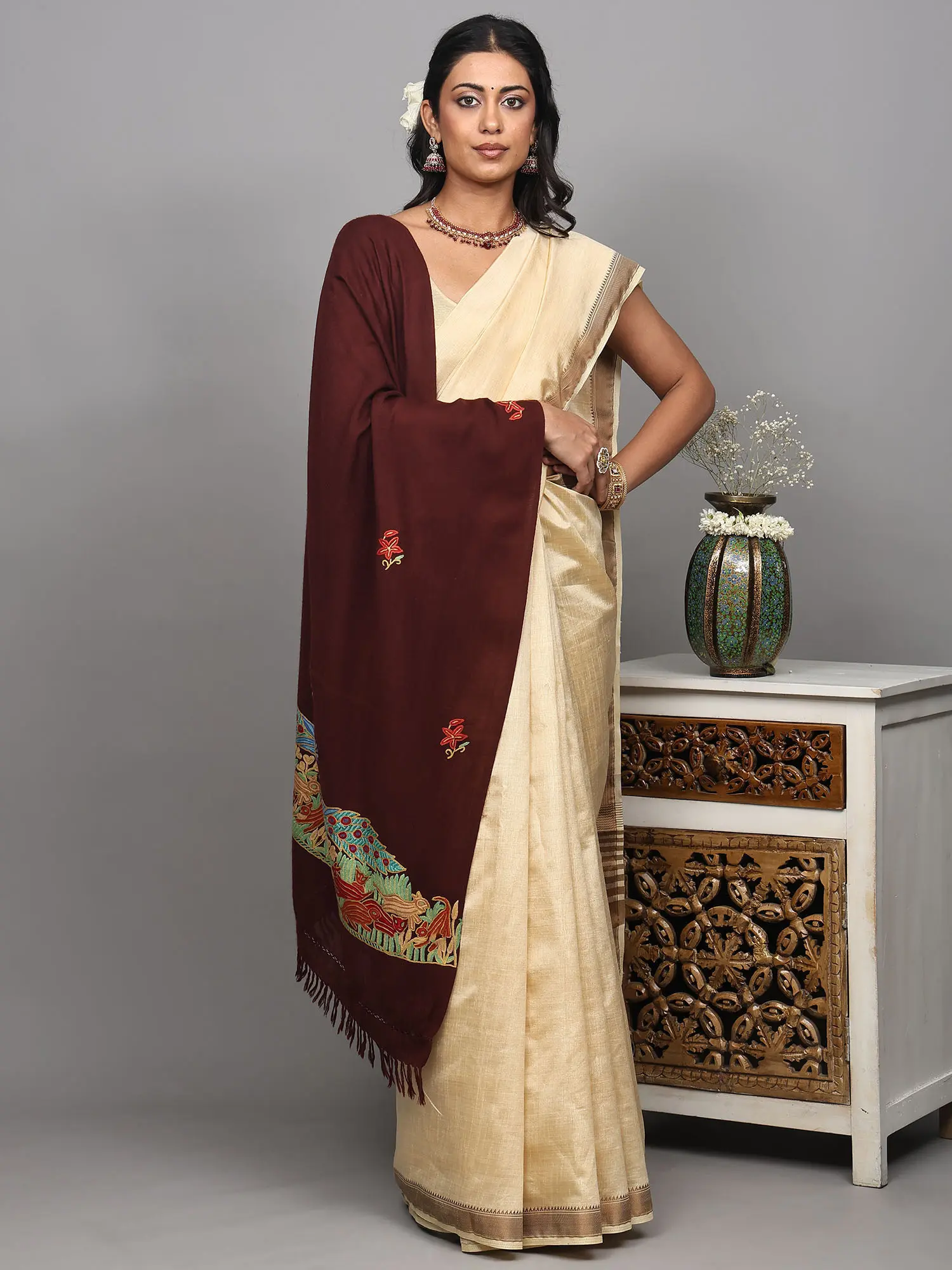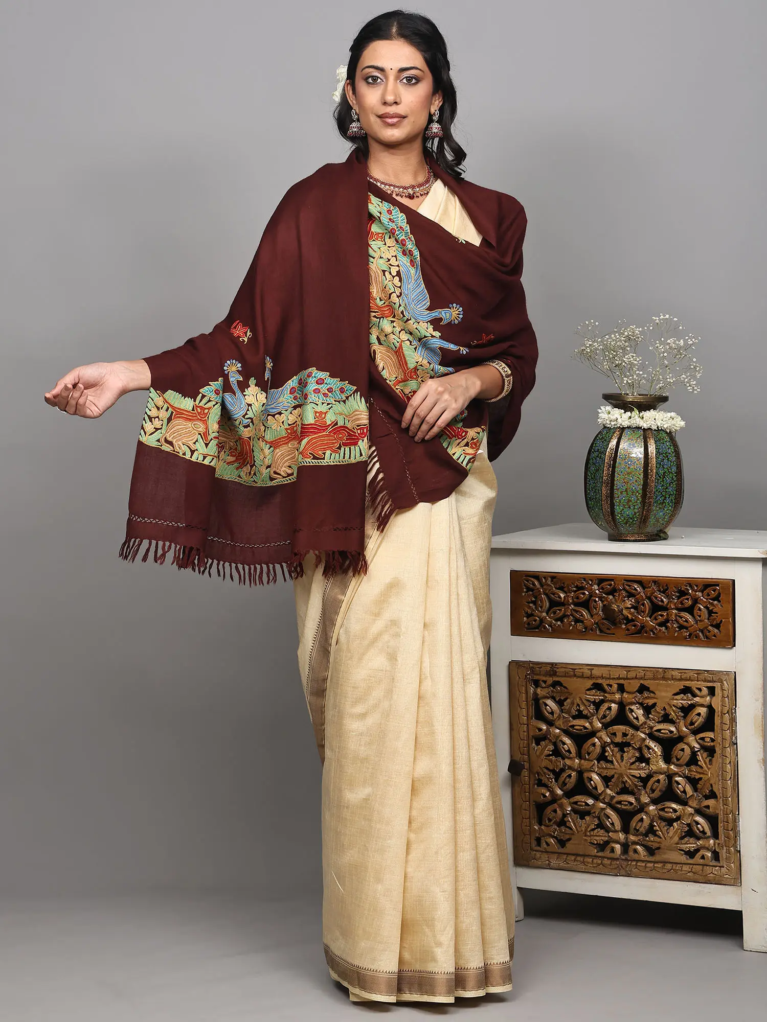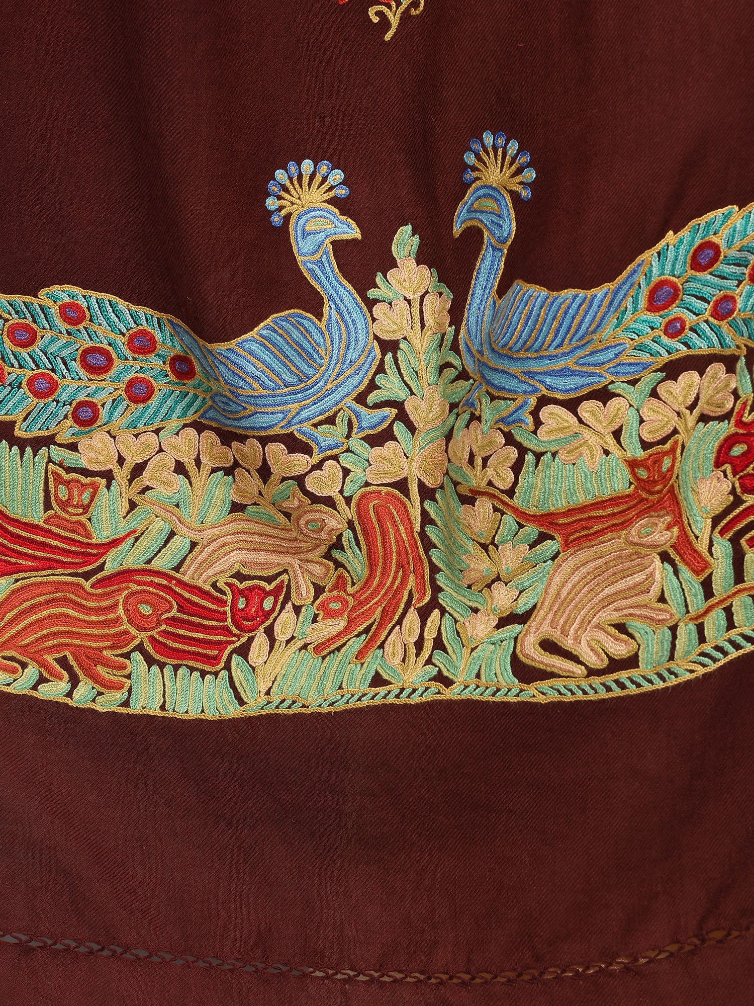 Stole from Kashmir with Aari Hand-Embroidered Giant Paisleys All-Over