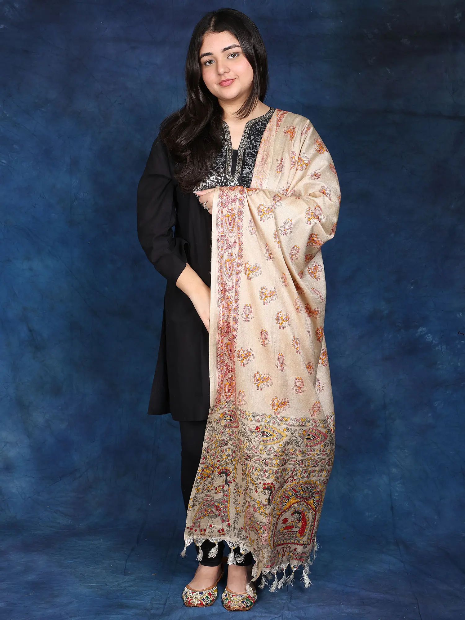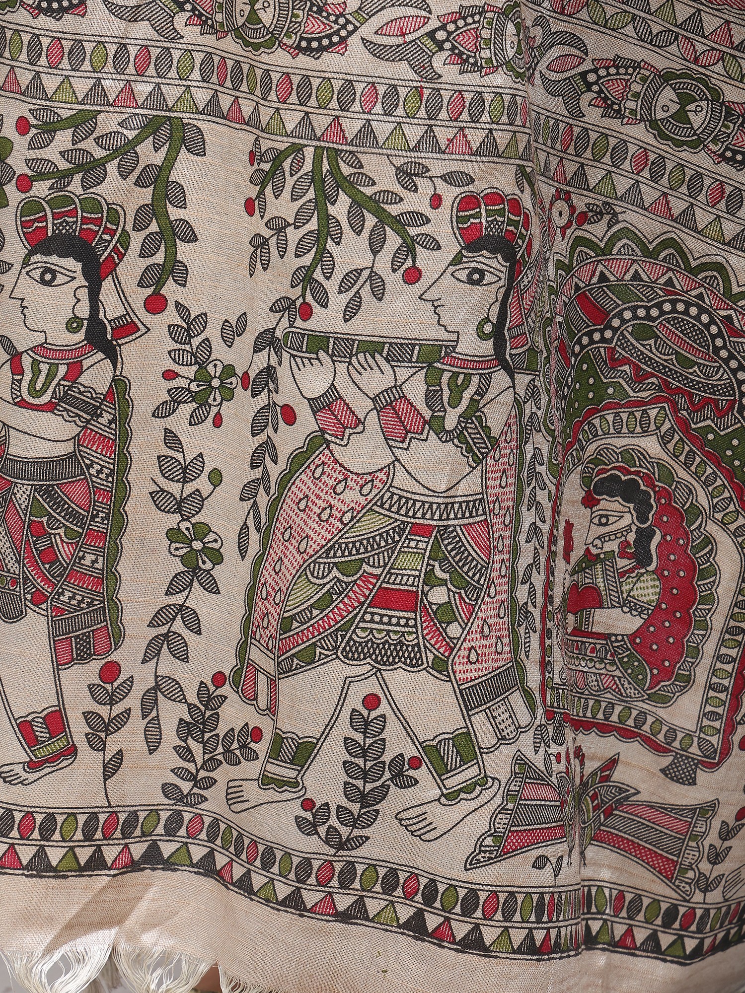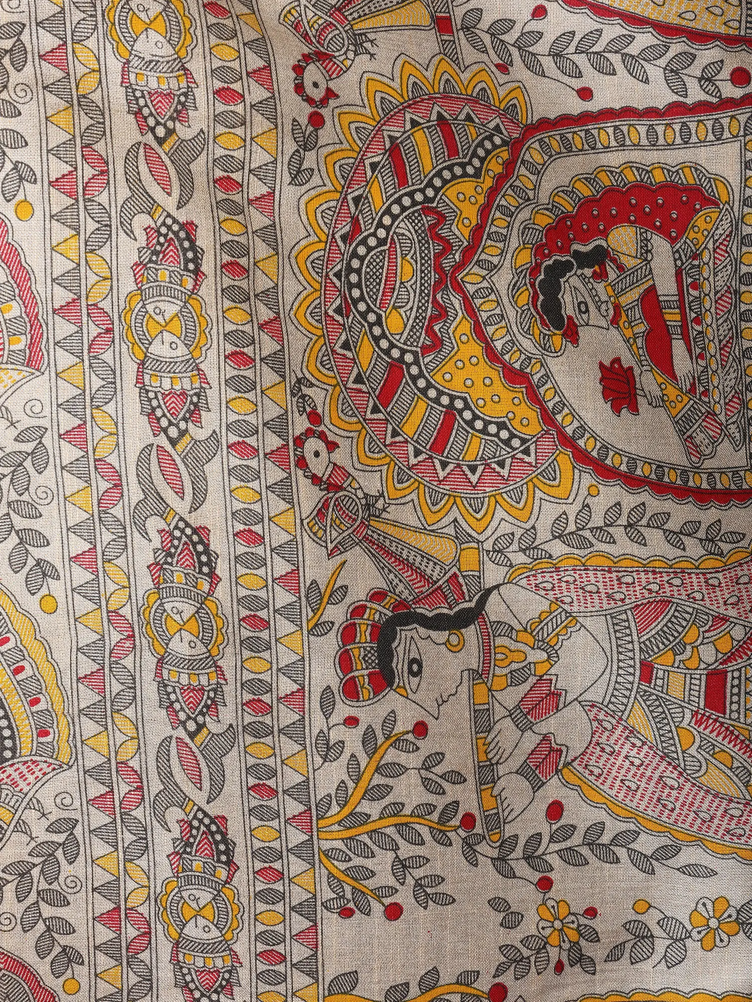 Hand-Painted Khadi Cotton Stole from Bihar with Madhubani Art