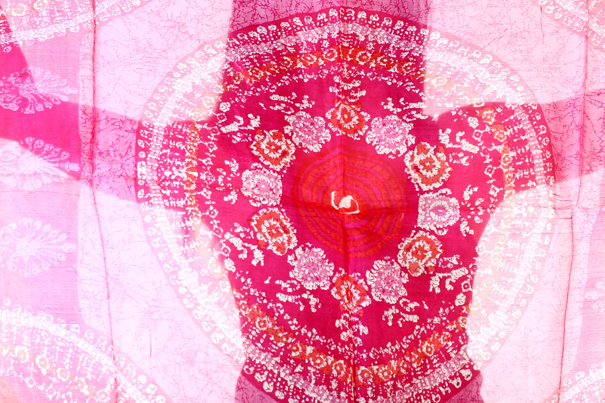 Magenta and White Lehenga Choli from Gujarat with Hand Embroidery and Studded Mirrors