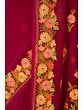 Discover a masterpiece of traditional Indian craftsmanship with this stunning magenta-purple georgette saree, adorned with intricate Kashmiri chain-stitch embroidery. This saree is a testament to the artistry passed down through generations, bringing a touch of timeless elegance to your wardrobe. The rich, deep magenta-purple hue of the georgette fabric provides a perfect canvas for the vibrant, meticulously hand-embroidered floral motifs.