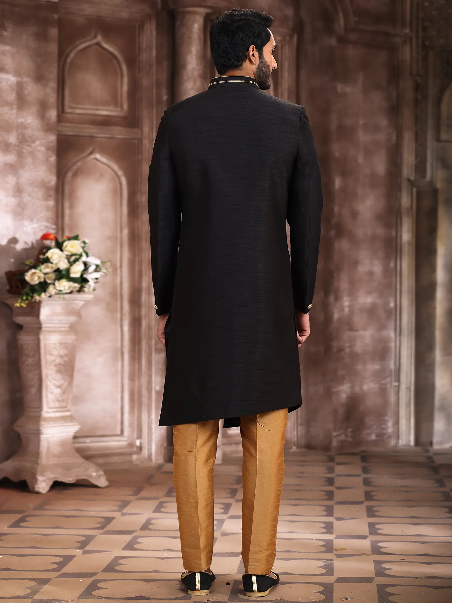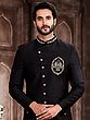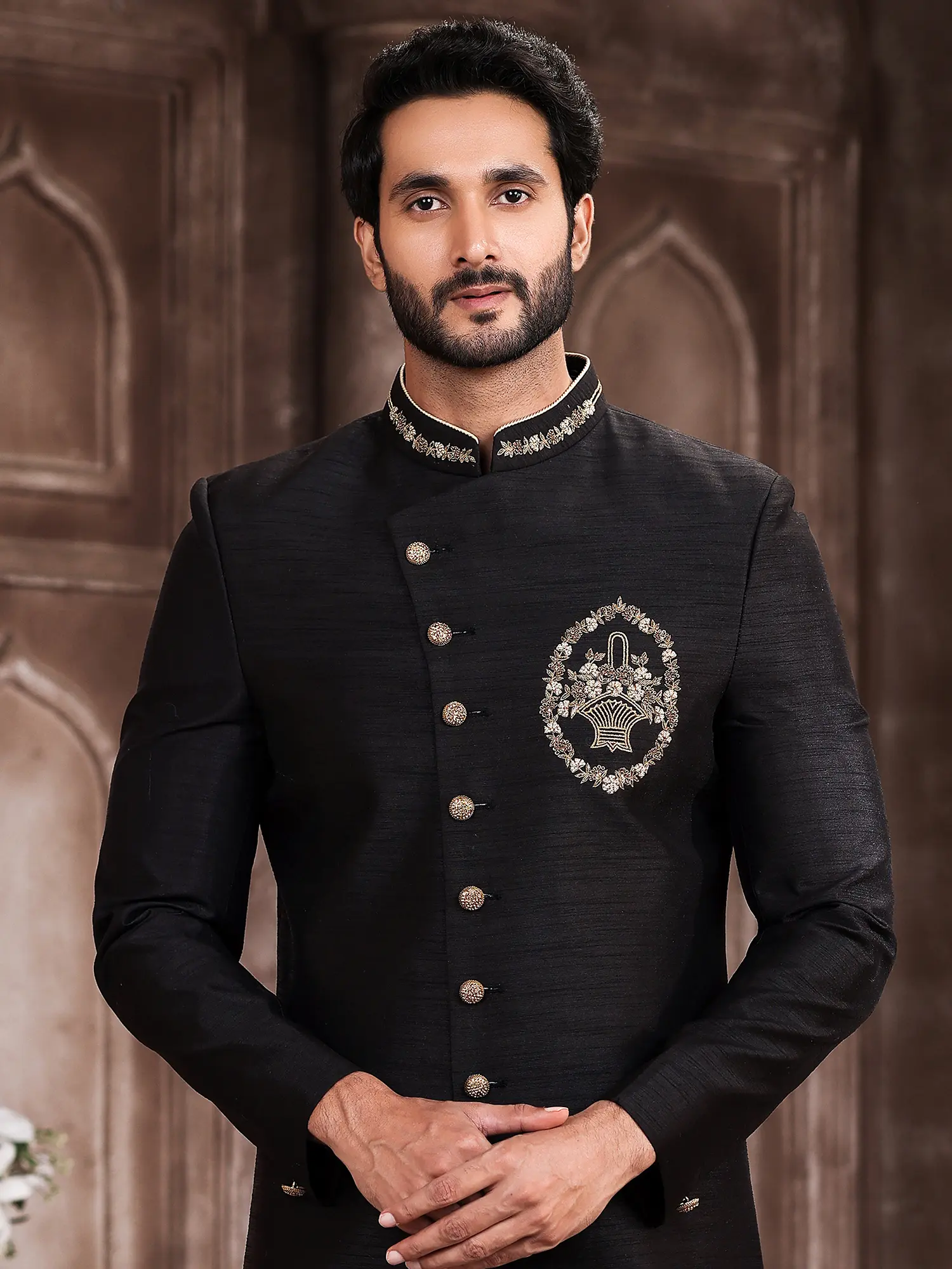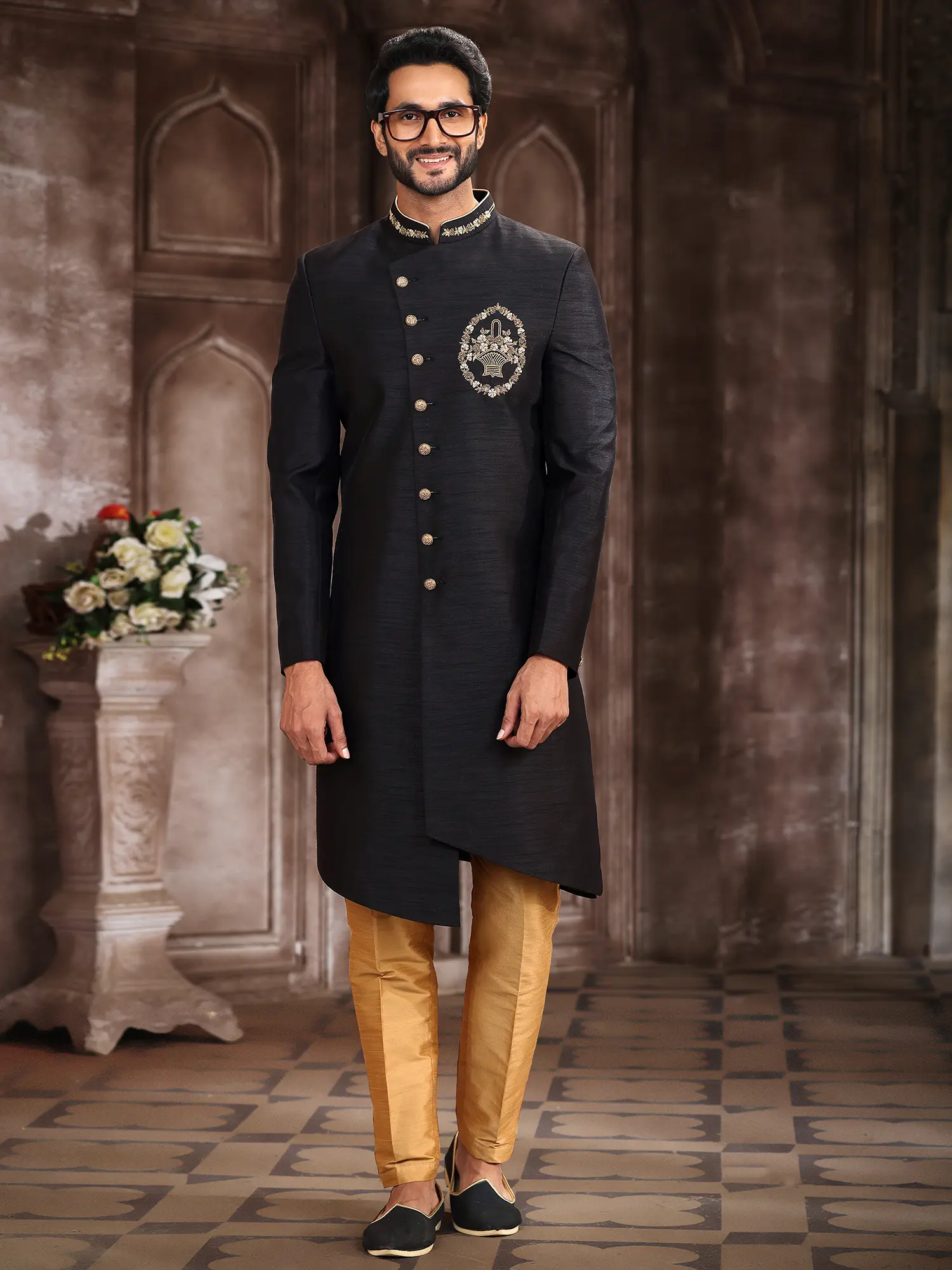 Majestic Embroidered Art Silk Sherwani With Aligarhi Pant For Indo Western Wedding Splendor