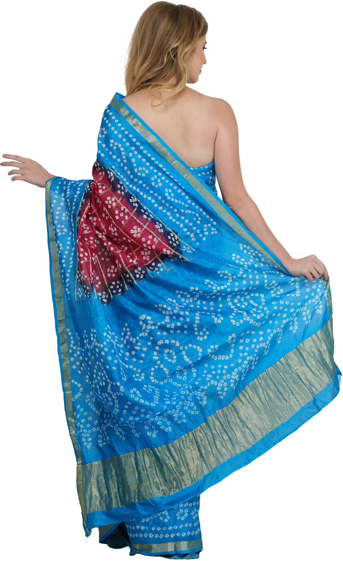 Bandhani Gharchola Saree with Zari Weave and Tie-Dye Motifs