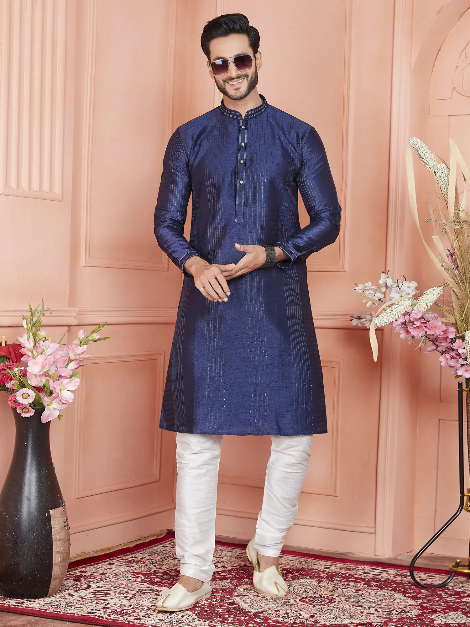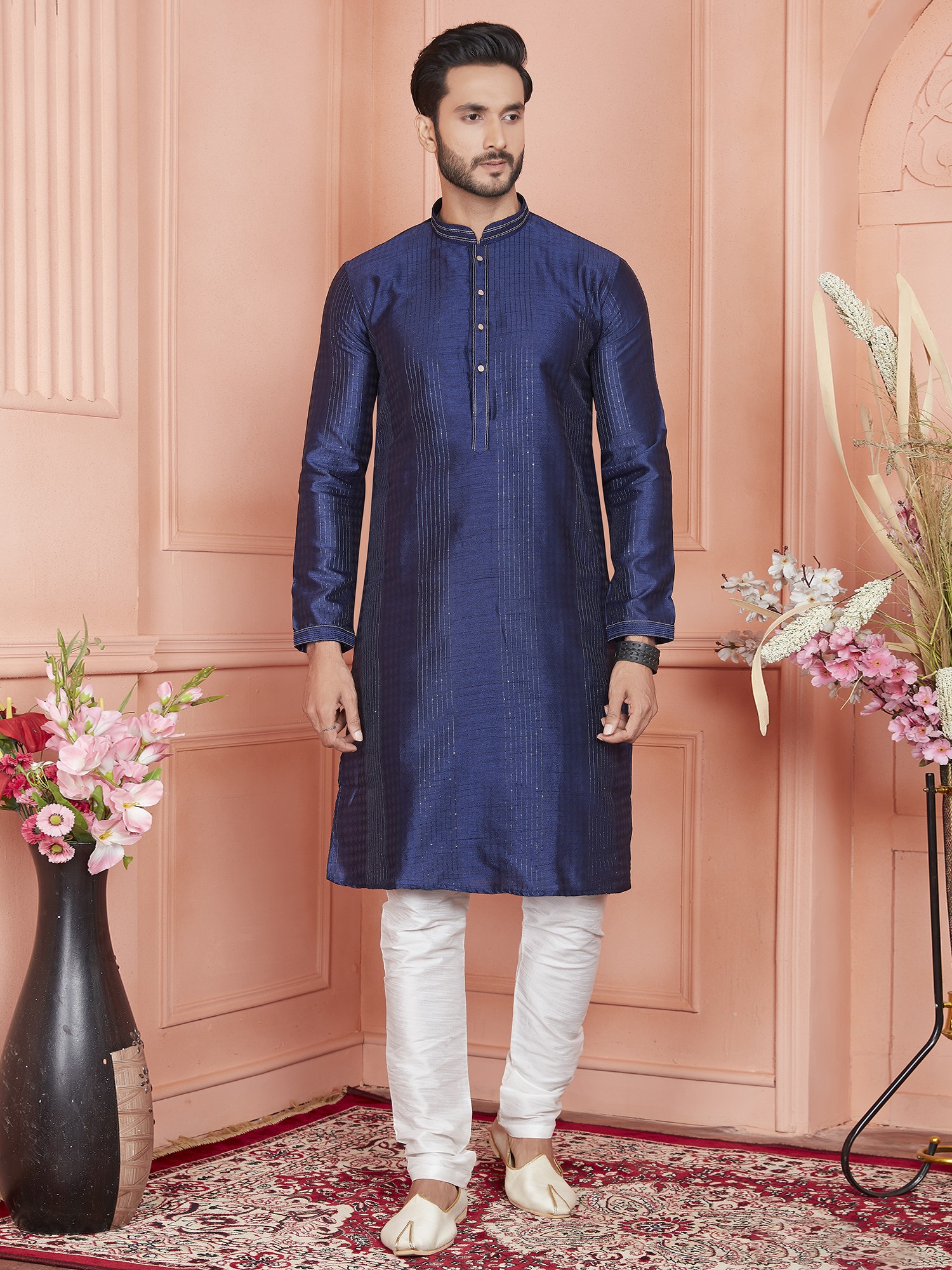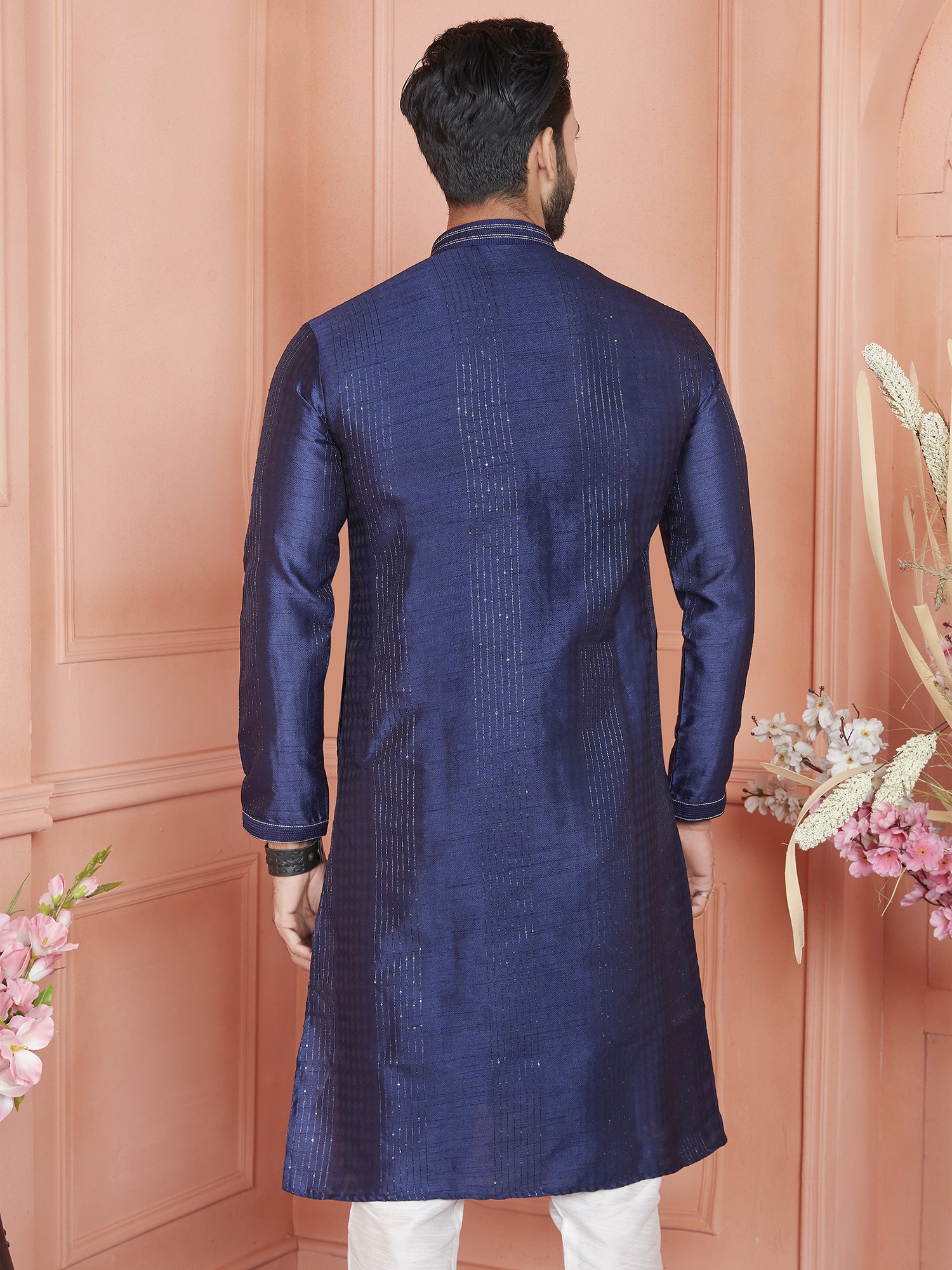 Viscose Silk Thread Sequins Work Attractive Mandarin Collar Festive Wear Kurta