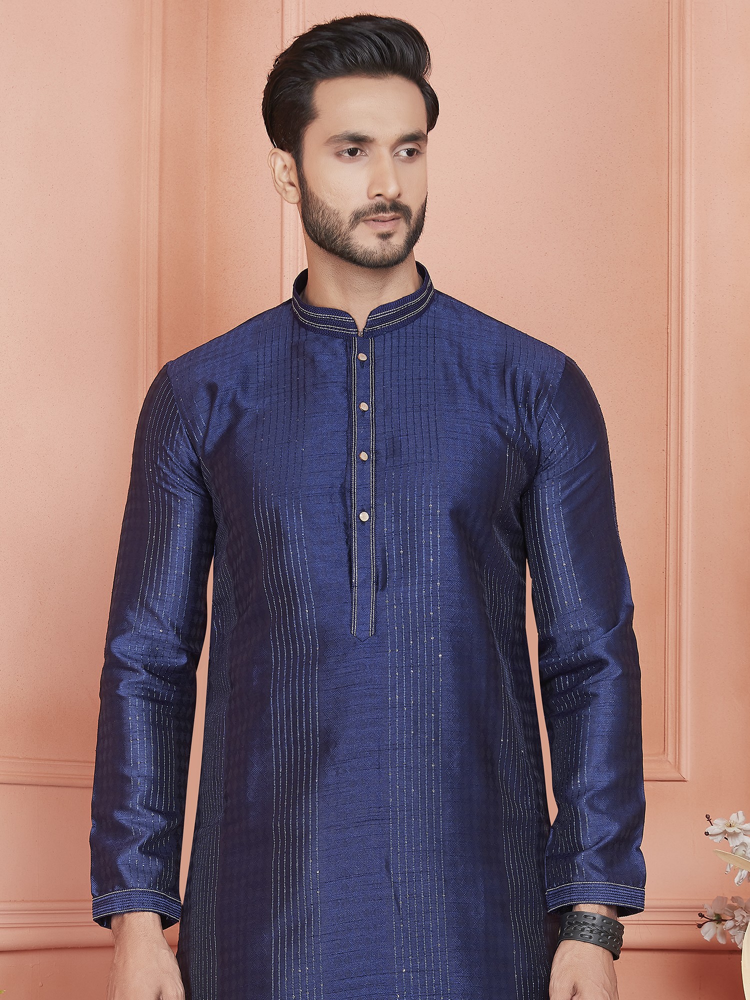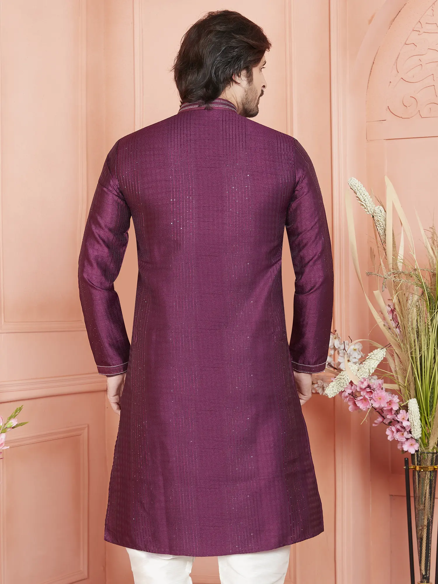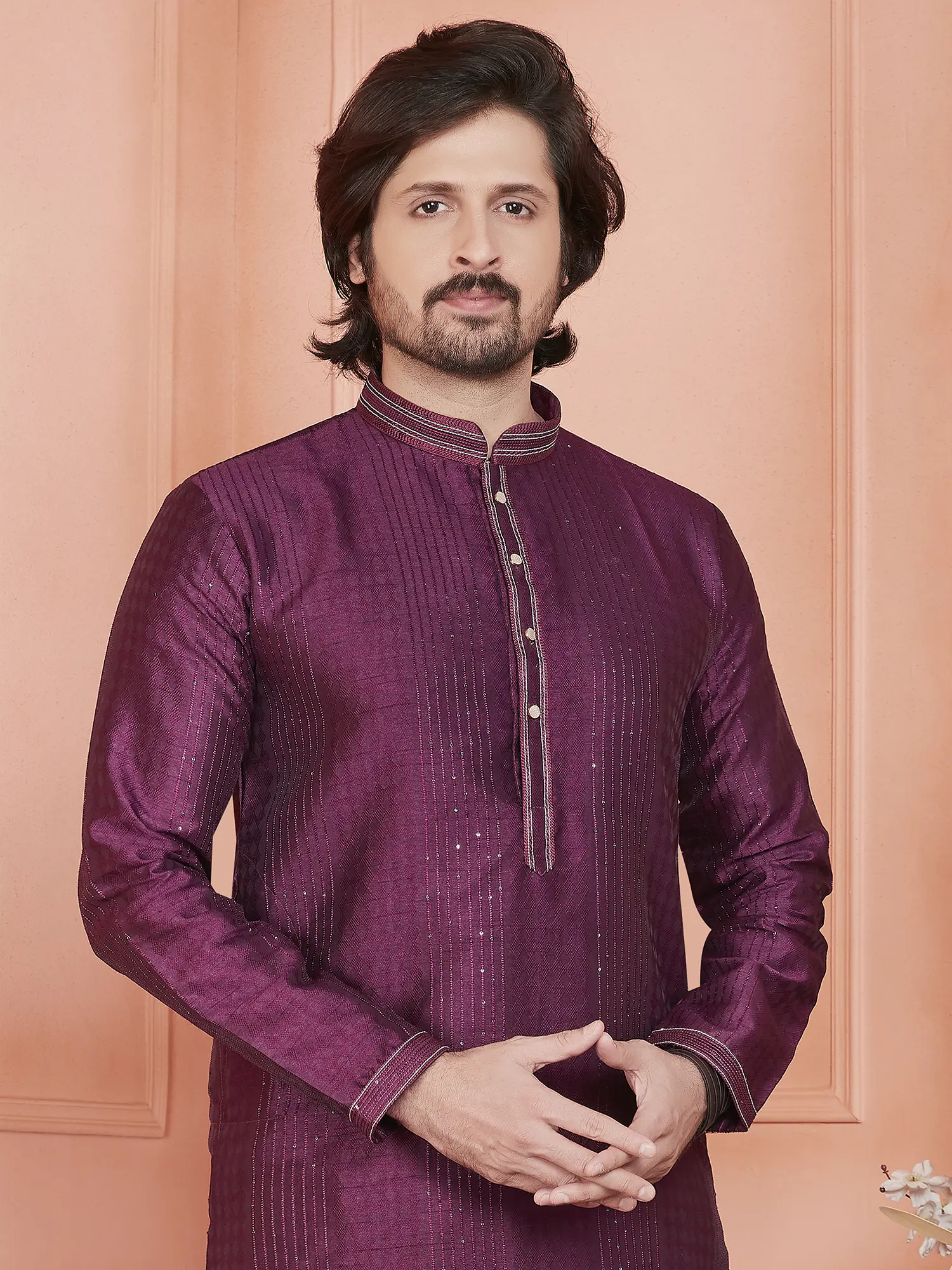 Viscose Silk Thread Sequins Work Attractive Mandarin Collar Festive Wear Kurta