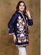 The Aari embroidery technique, a hallmark of Kashmiri craftsmanship, is what truly sets this jacket apart. Each flower, each leaf, each delicate stitch is meticulously hand-embroidered, creating a stunning tapestry of artistry. The vibrant yet subtle color palette of the embroidery complements the deep blue of the jacket, resulting in a harmonious and visually arresting piece. This intricate handwork is not just decorative; it's a narrative woven into the fabric, reflecting the rich cultural heritage of Kashmir. The artistry elevates this jacket beyond mere clothing; it becomes a wearable work of art.