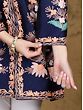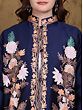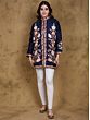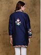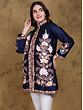 Indulge in the captivating allure of our Bellwether-Blue Art Silk Mandarin Kashmiri Short Jacket. This meticulously crafted piece seamlessly blends traditional Kashmiri artistry with contemporary design, creating a garment that's both timeless and trendsetting. The rich, deep blue art silk fabric provides a luxurious backdrop for the breathtaking Aari embroidery, showcasing a cascade of delicately rendered flowers in soft peach, cream, and green hues. The intricate detailing, a testament to the skill of Kashmiri artisans, elevates this jacket to a true masterpiece. Perfect for adding a touch of sophisticated charm to any outfit, this jacket will effortlessly elevate your style.