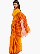 Radiate with the warmth of a thousand suns in this exquisite pure cotton sari, a testament to Bangalore's rich weaving heritage. The vibrant marigold hue is a celebration of joy and optimism, instantly uplifting your spirit and drawing admiring glances. This sari is more than just a garment; it's an embrace of comfort and timeless elegance, perfect for any occasion where you want to feel both graceful and at ease.