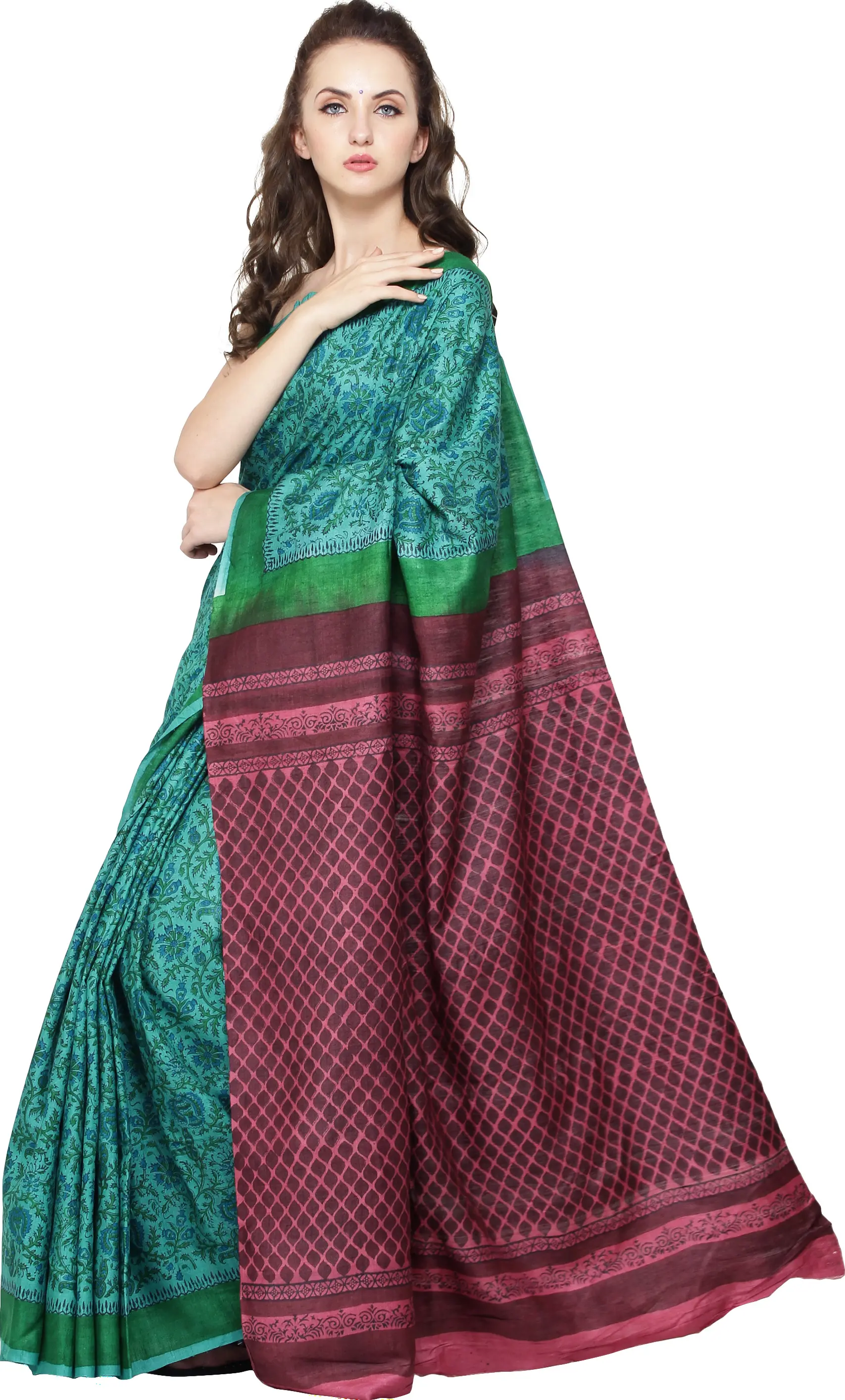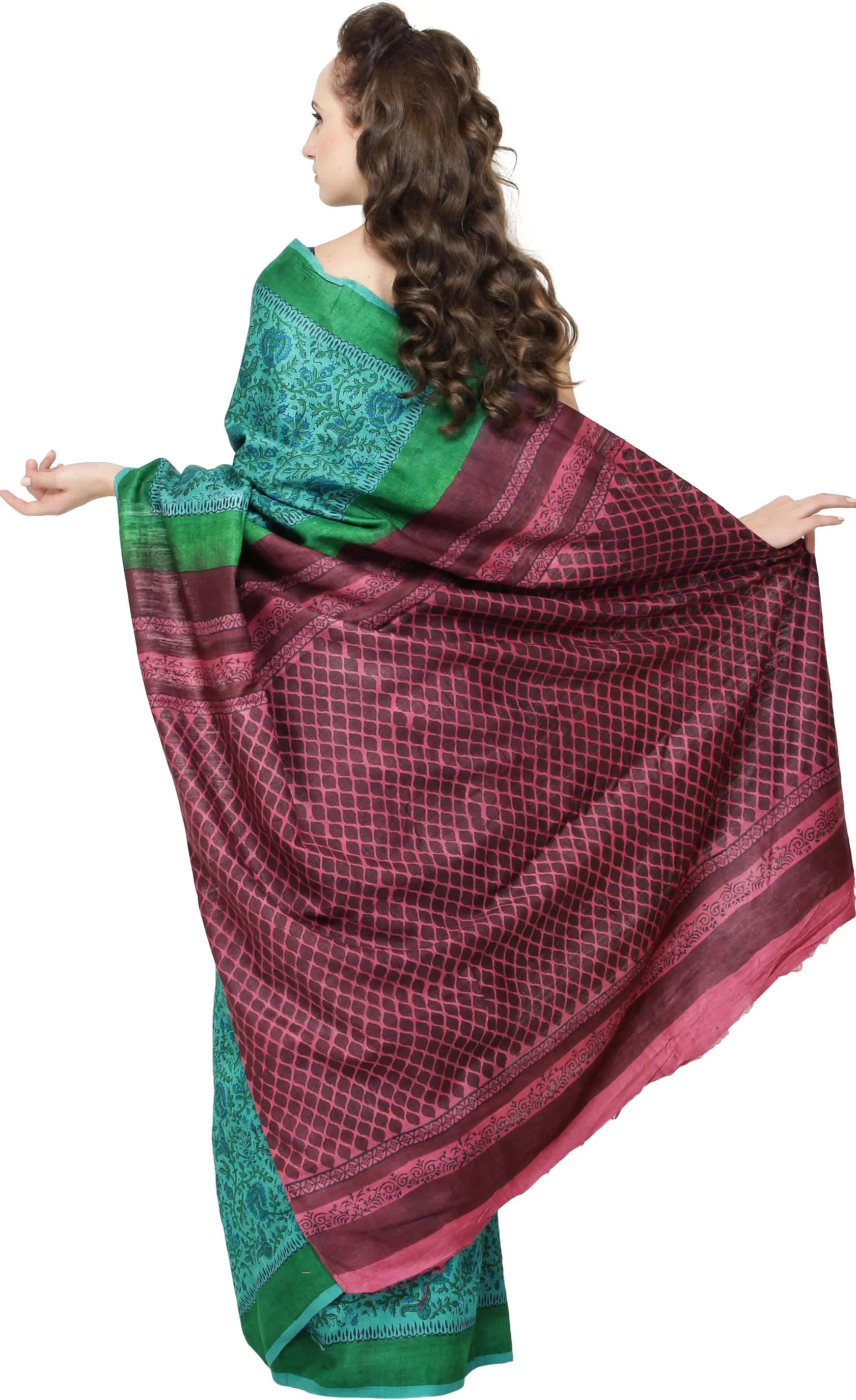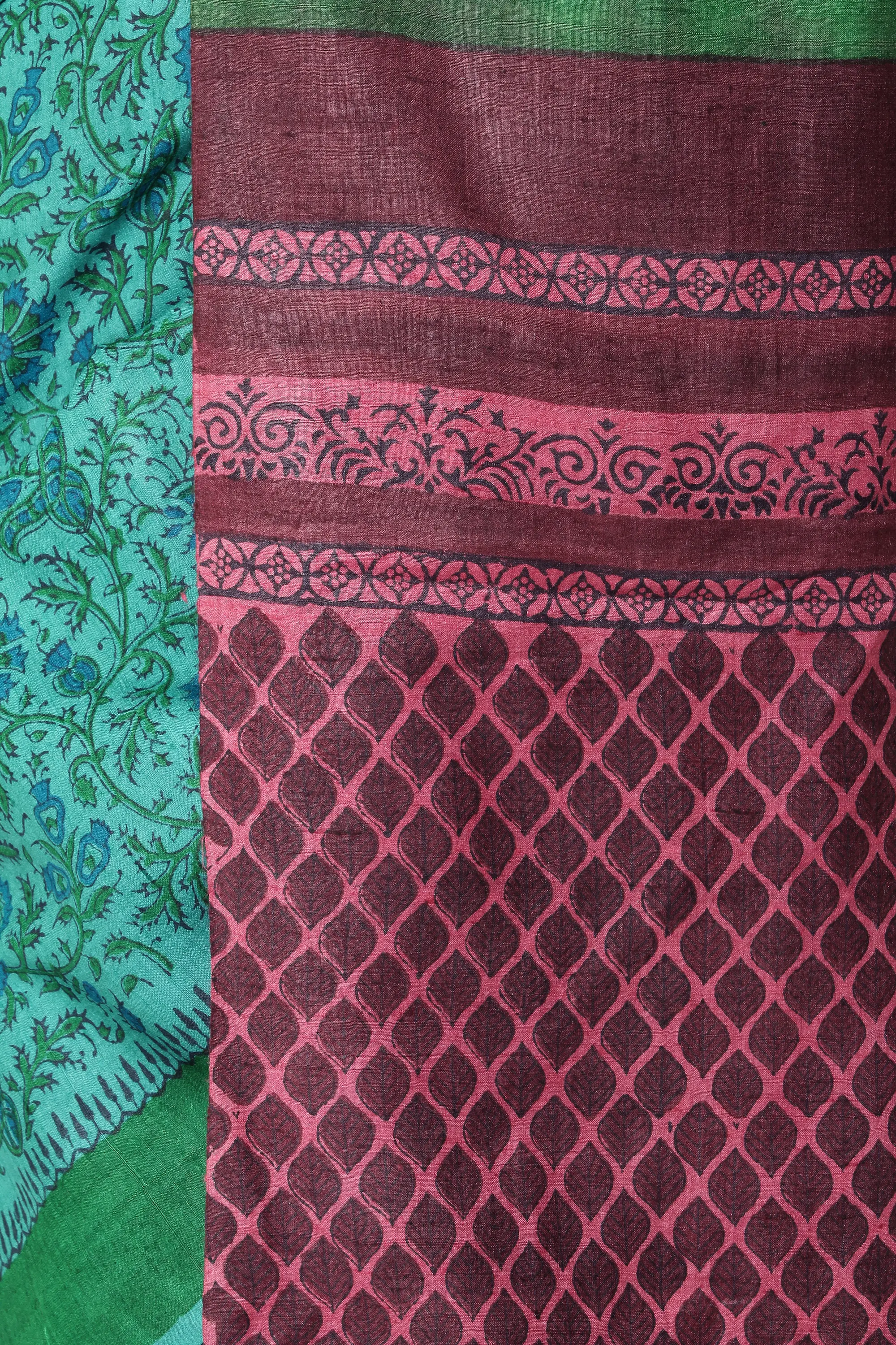 Forest-River Kalamkari Dupatta from Telangana with Zari Border and Printed Paisleys