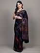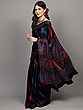 Blue-Depths Saree with Block Printed Floral Leaves All-Over from Madhya Pradesh