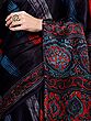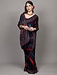 The true artistry of this saree lies in its borders. A meticulously crafted floral vine pattern adorns the edges, a testament to the rich textile heritage of the region. This intricate border, rendered in contrasting shades of red and blue, frames the striking print of the body with a delicate elegance. The detailed motifs are a celebration of nature's beauty, adding a touch of timeless grace to the contemporary design. The fine craftsmanship evident in every stitch speaks volumes about the skill and dedication of the artisans who brought this creation to life.