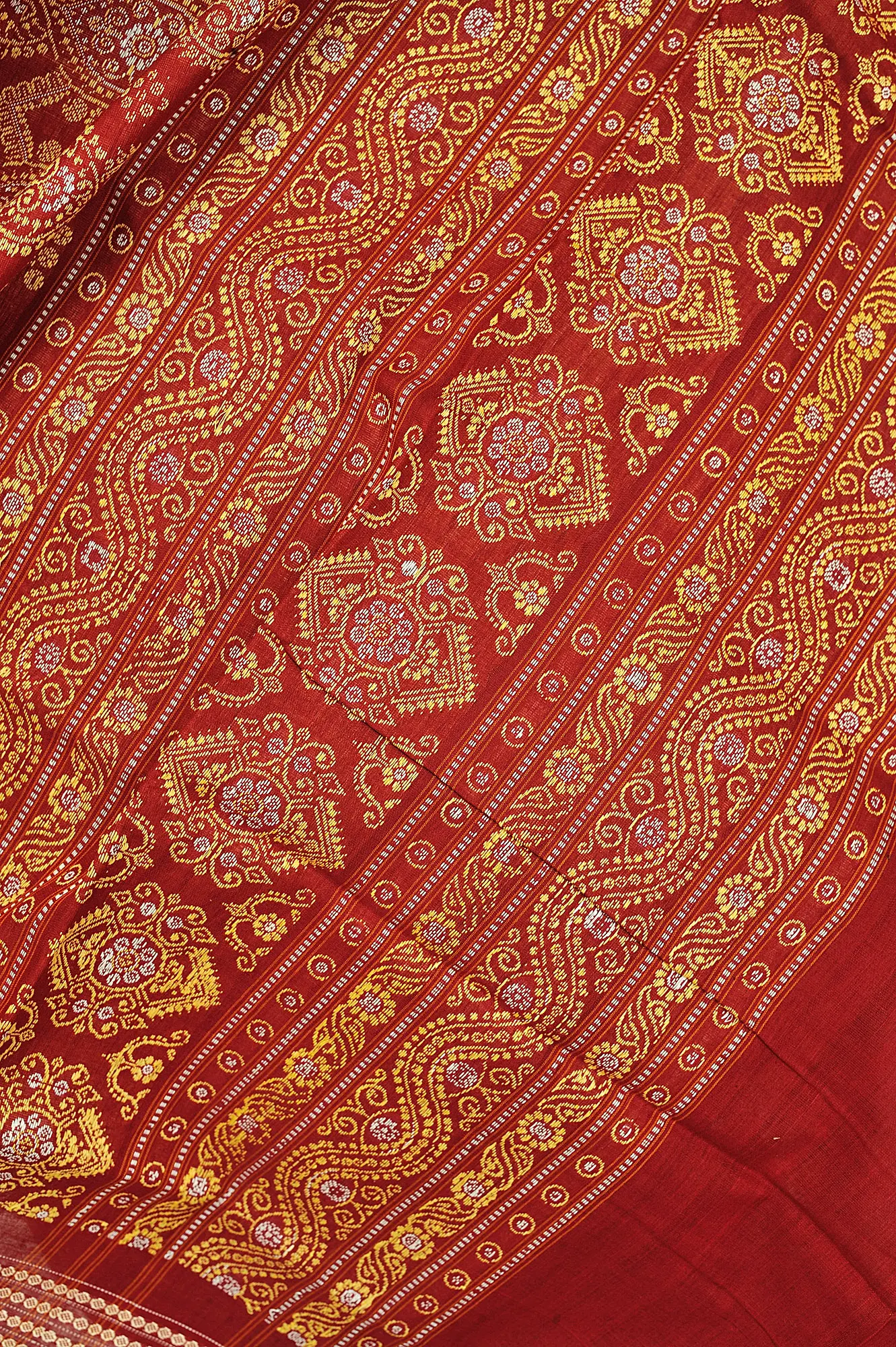 Burnt-Orange and Maroon Bomkai Sari from Orissa with Woven Rudraksha Border and Floral Motifs