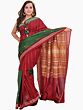 Maroon and Green Double-Colored Bomkai Sari from Orissa