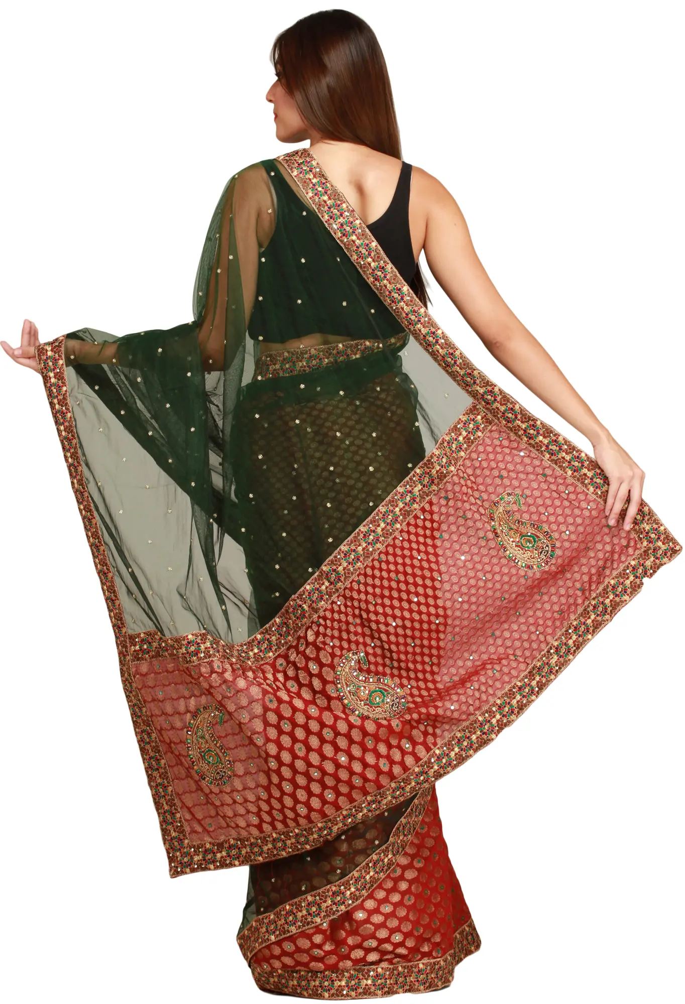 Grape-Wine Ghagra Skirt from Kutch with Rabari Embroidered Bootis