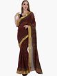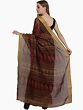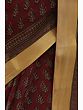 Maroon Kalamkari Sari with Block-Printed Leaves and Golden Border