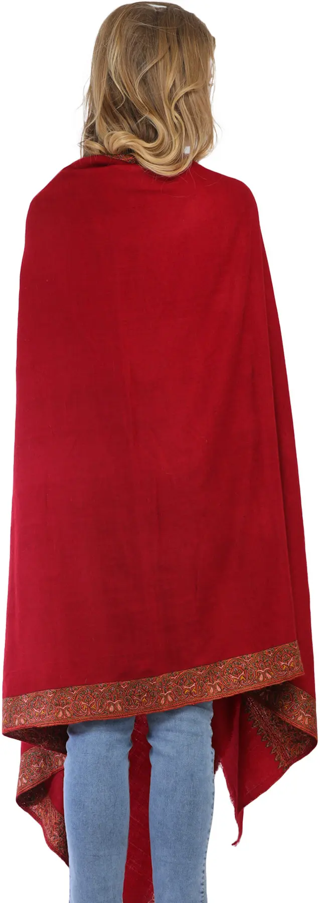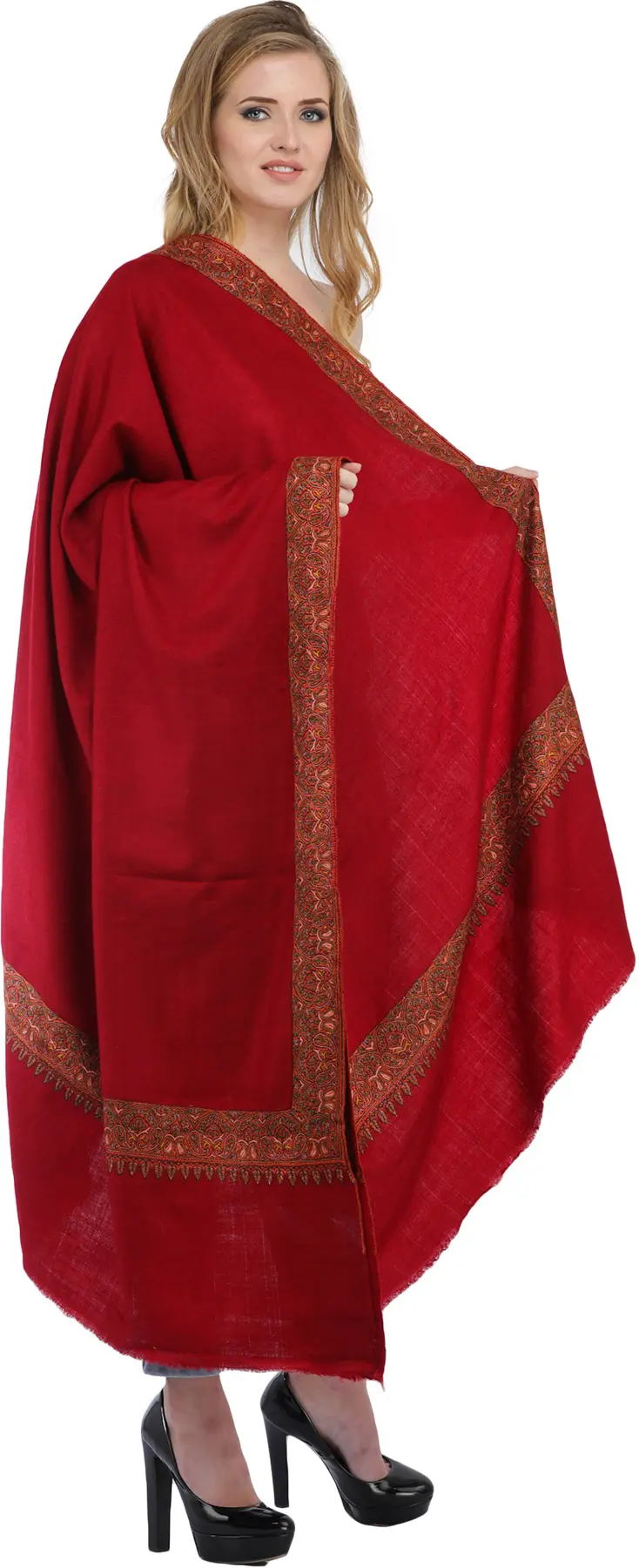 Pure Pashmina Stole with Sozni Hand-Embroidered Floral Jaal from Kashmir