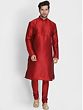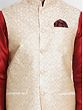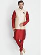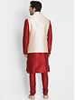 The abstract pattern embroidery is a unique style that merges the beauty of geometric patterns with that of the grace of embroidery. The cross stitch is generally used for this purpose. This Maroon Silk Blend Kurta Pajama with Abstract Pattern Embroidered Cream Modi Jacket epitomizes regal charm and artistic finesse and utilizes the formality of the abstract design to the fullest. Crafted from a luxurious silk blend, the maroon kurta pajama offers comfort with a touch of opulence. The cream Modi jacket, adorned with abstract pattern embroidery, elevates the ensemble to refined sophistication. Merging tradition with modern aesthetics, this ensemble is a visual delight, capturing attention with intricate detailing and a contemporary silhouette.