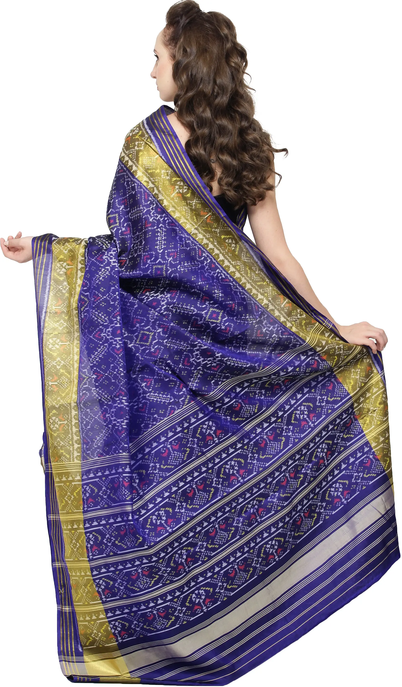 The accompanying blouse and underskirt are tailored to your specific size, ensuring a perfect and comfortable fit. This attention to detail means you can focus on exuding confidence and grace. Drape yourself in the legacy of Gujarat's textile artistry and experience the exquisite comfort and timeless appeal of this pure silk Ikat Patola sari. It's a celebration of tradition, a symbol of craftsmanship, and an embodiment of pure, unadulterated elegance.