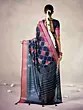 Malai Crepe Silk Saree Designer Printed Pink Lotus Flower Multicolor Rainbow Striped Patterns Vibrant For Women