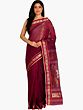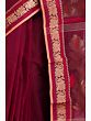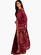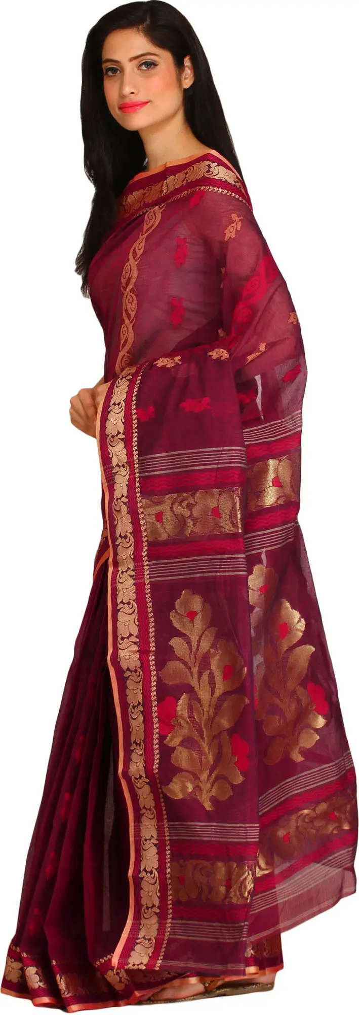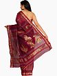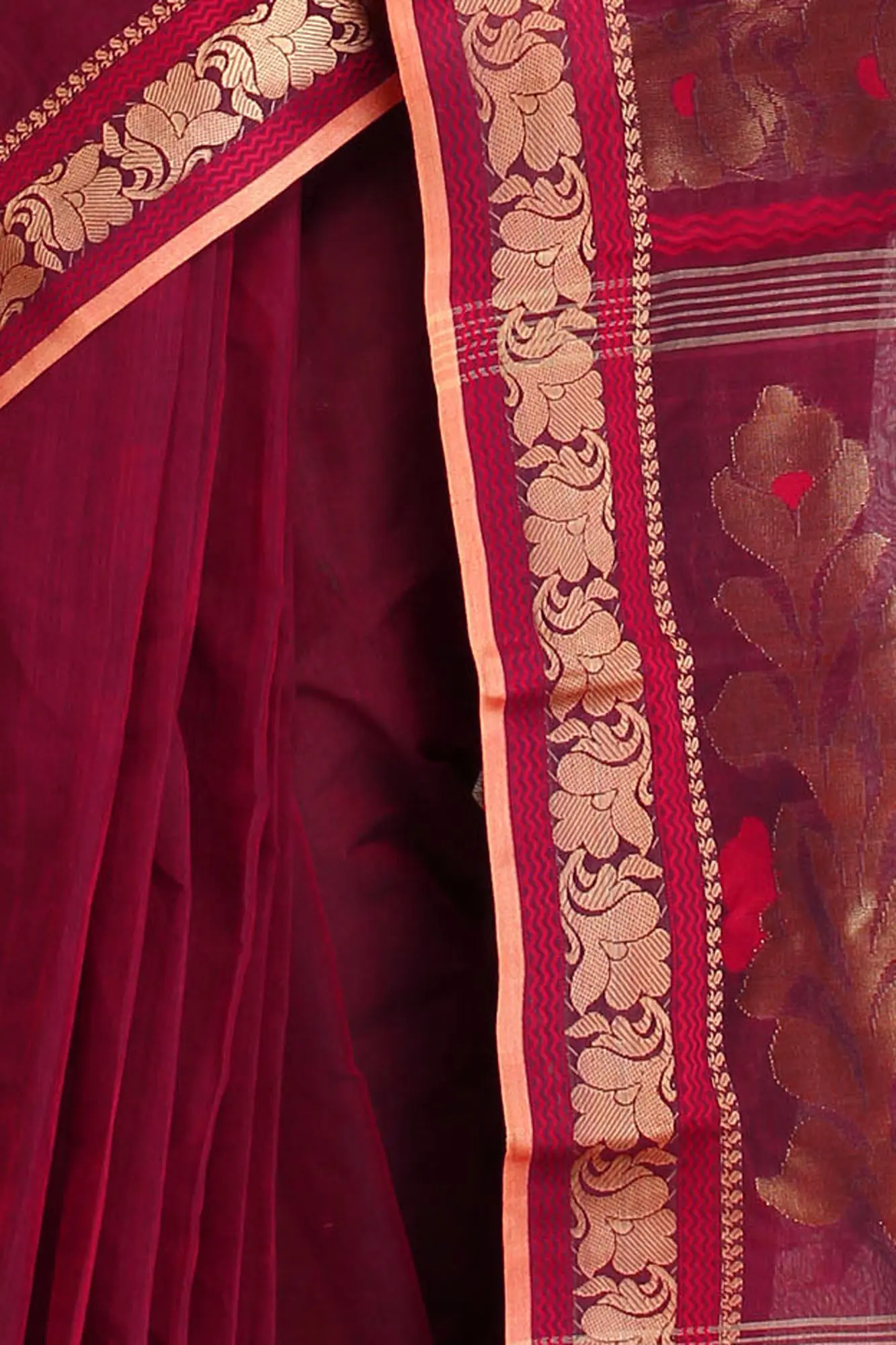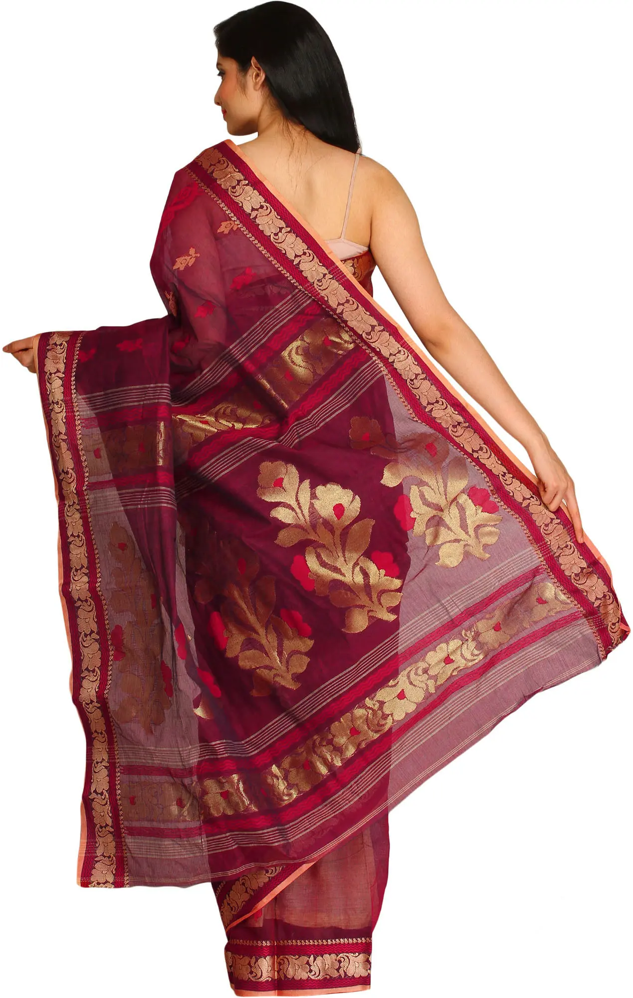 Rococco-Red Purbasthali Sari from Bengal with Woven Temple Border and Stripes on Pallu