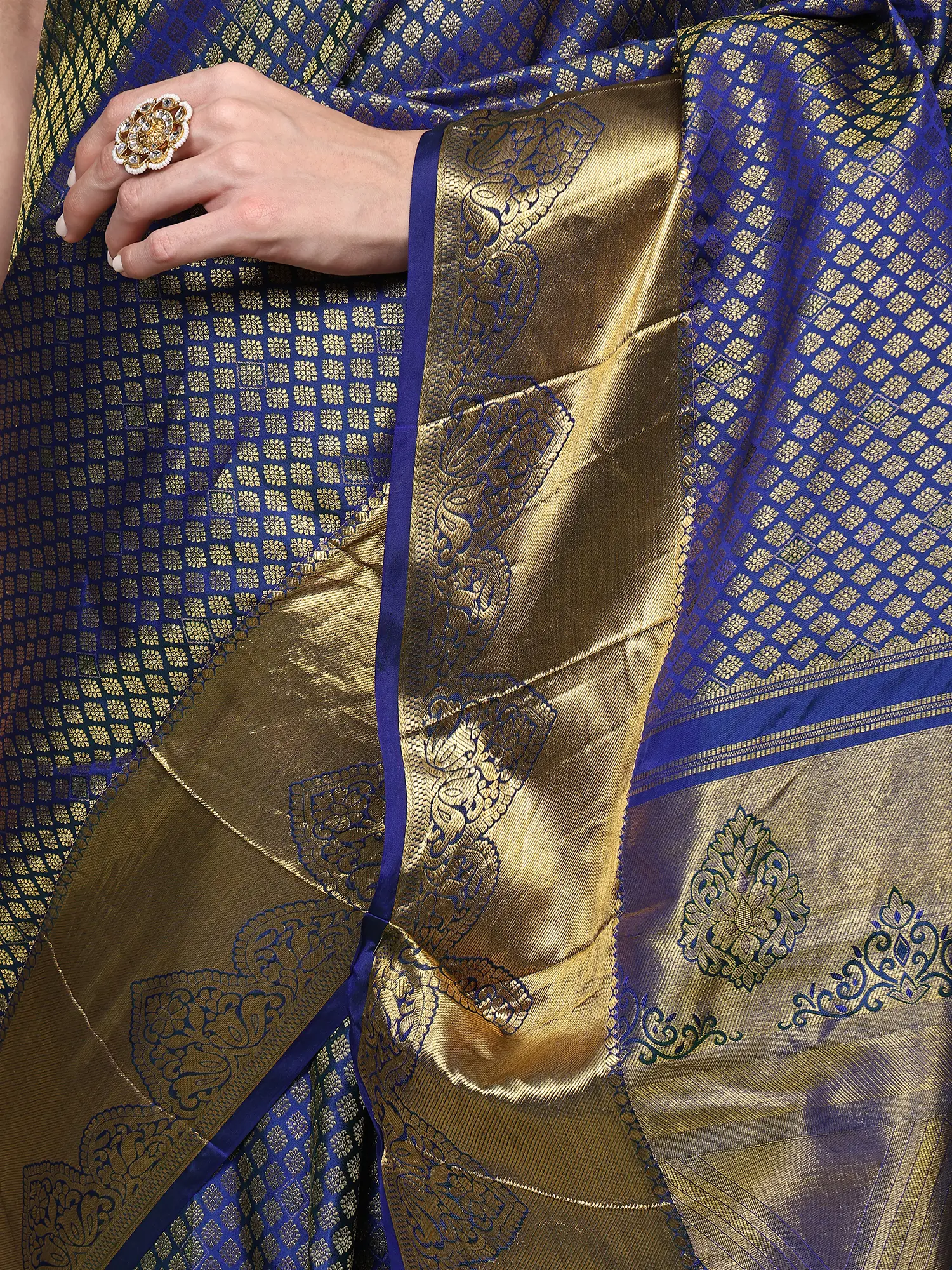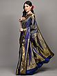 Snow-White Temple Saree with Zari Woven Motifs and Contrast Pallu-Border from Kumbakonam