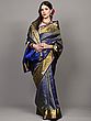 Medieval-Blue Pure Wool Shawl with Sozni Hand-Embroidered Paisleys and Jaal Border from Kashmir