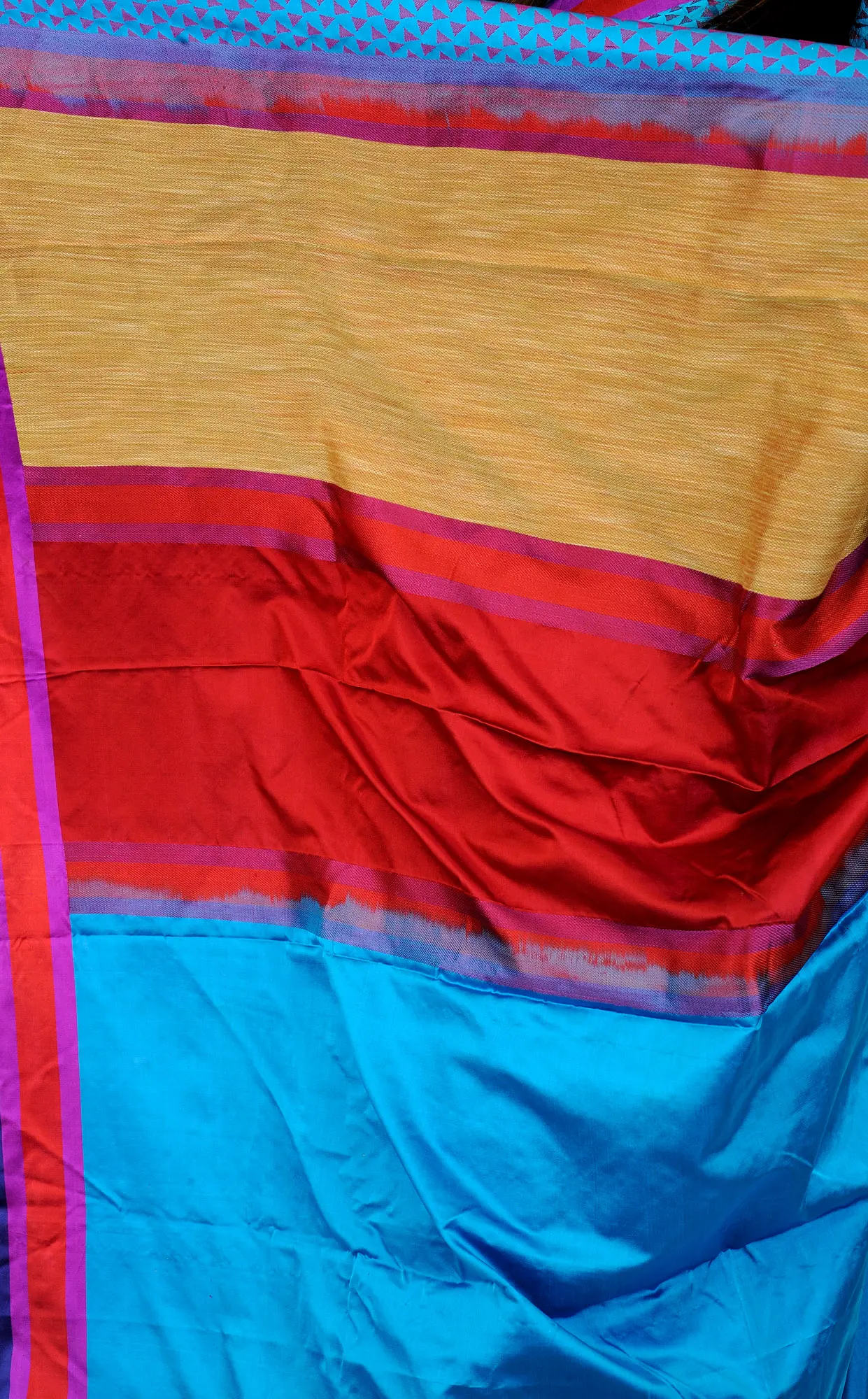 When the weaving of the saree is completed, it is made ready to be sent out for sale. Extra or loose threads are cut to make the saree flawless.