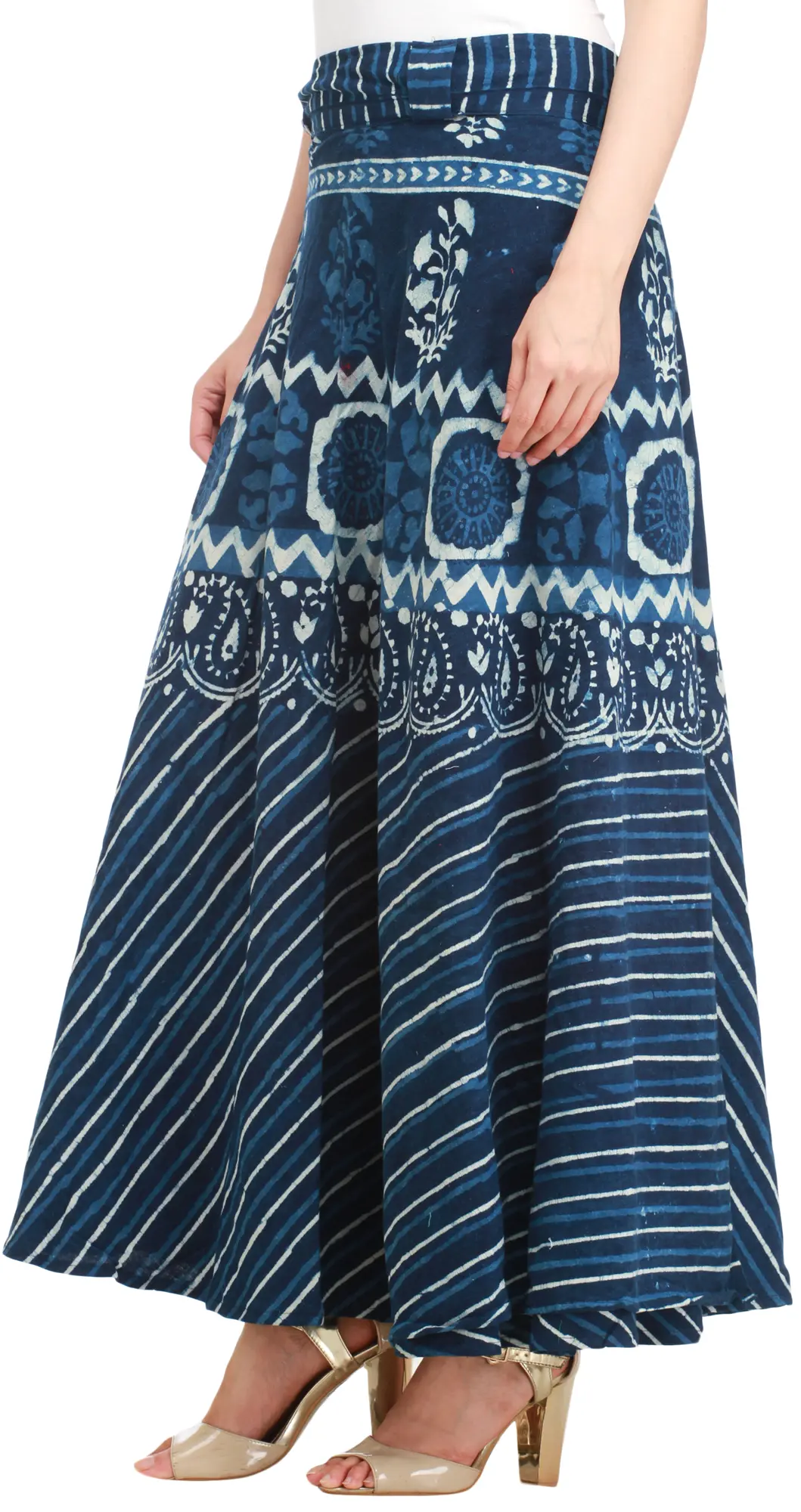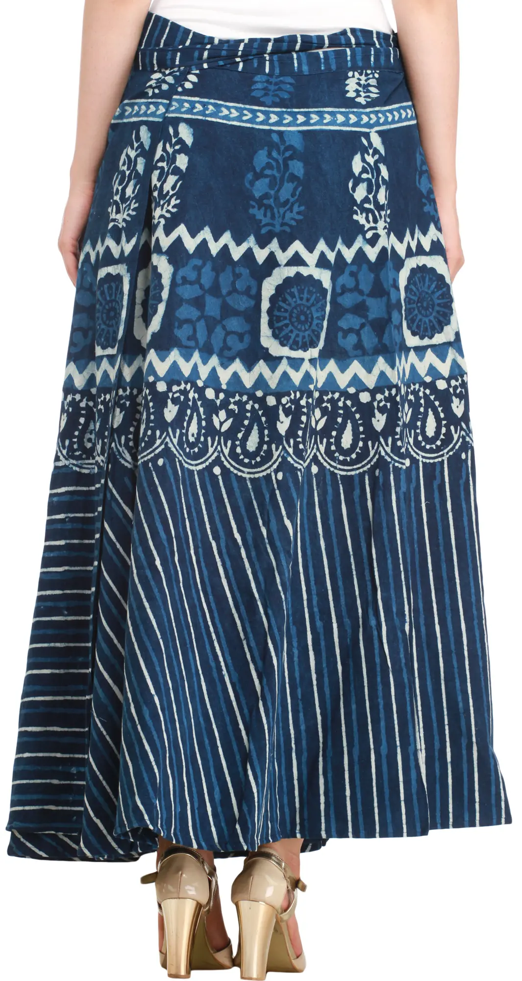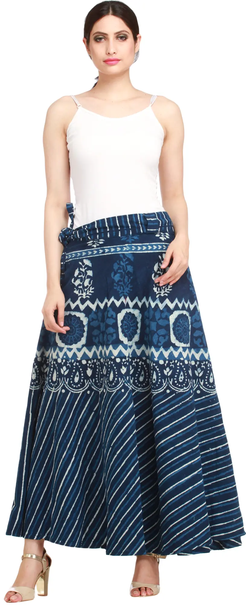 Medieval-Blue Block Printed Wrap-Around Skirt from Pilkhuwa