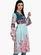 Floral Printed Satin Long Kaftan with Studded Stones