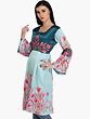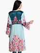 Aari Floral Embroidery Turqouise Satin Kaftan with Detailed Colorful Traditional Kashmiri Motifs