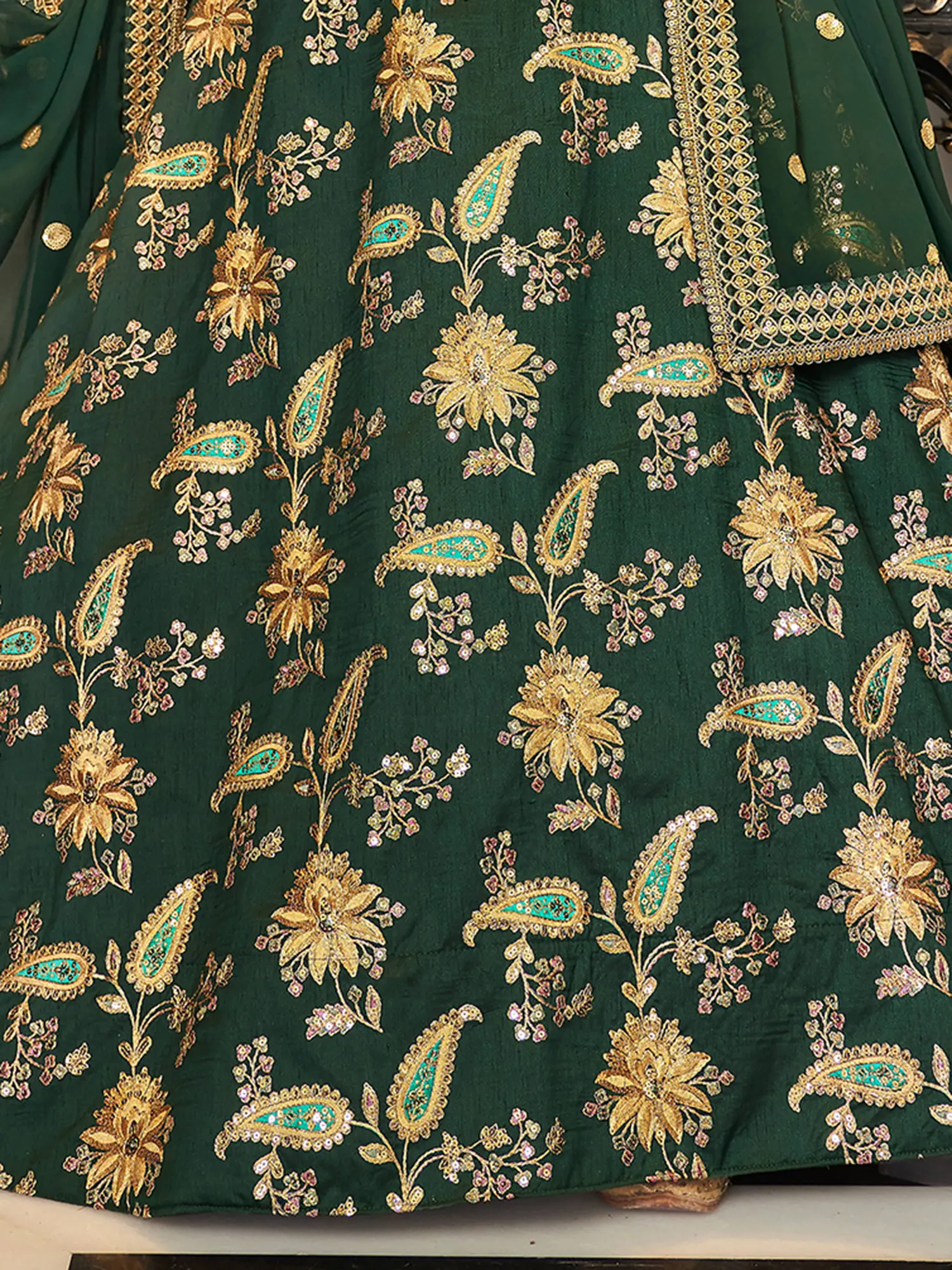 Art Silk Zari And Thread-Sequins Embroidery Work Traditional Lehenga Choli With Organza Floral Dupatta