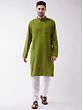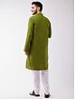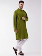 The Mehendi Green color symbolizes auspiciousness and is widely used on apparel that fits traditional occasions. The color carries a vibrant energy and goes very well with white Pajamas or Dhoti. Drape yourself elegantly with this Mehendi-Green Cotton Blend Straight Kurta paired flawlessly with a White Pure Cotton Pajama. In a soothing Mehendi green hue, the kurta offers a refreshing take on traditional wear. Its straight silhouette exudes grace and simplicity. Paired with a pure white cotton pajama, the ensemble achieves a harmonious balance of color contrast. The breathable cotton blend ensures comfort, while the meticulous design embraces cultural richness and contemporary aesthetics. Ideal for festive occasions or casual gatherings, this ensemble radiates a vibrant yet understated charm, making it a versatile and stylish choice for various events.