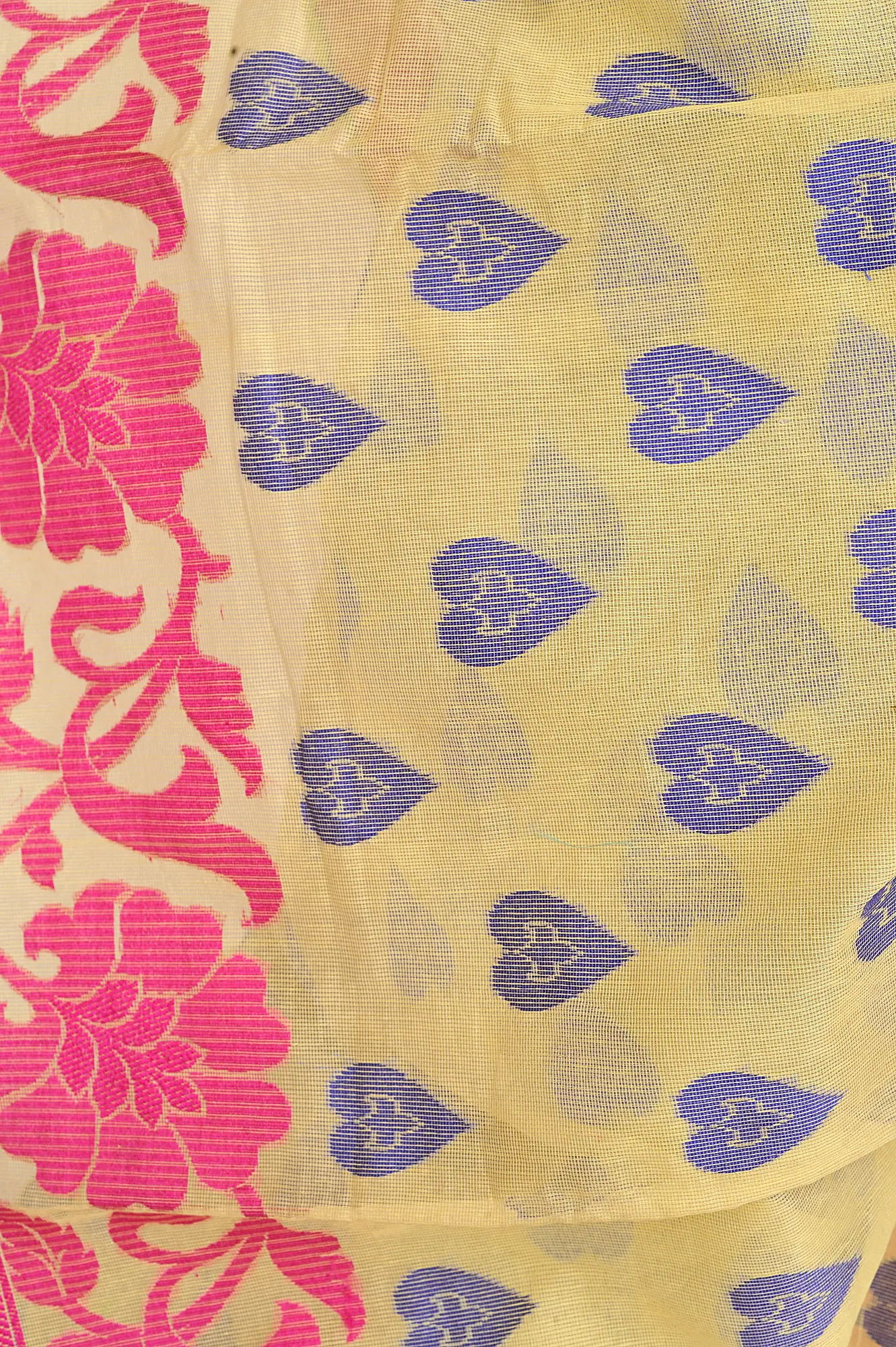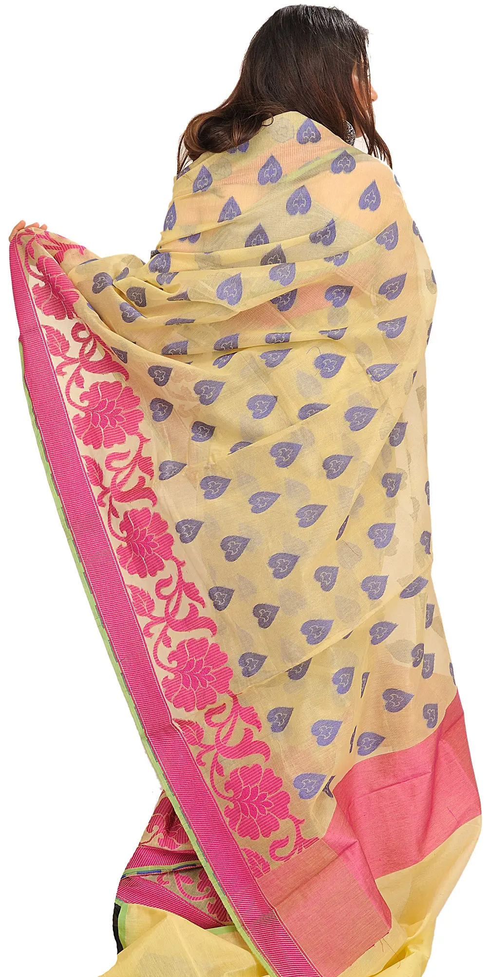 Fern-Green Sari from Varanasi with Woven Flowers and Plain Border