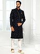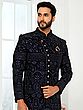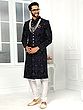 Men's Art Silk Embroidered Sherwani With Churidar Pants For Elegant Wedding Festive Celebrations