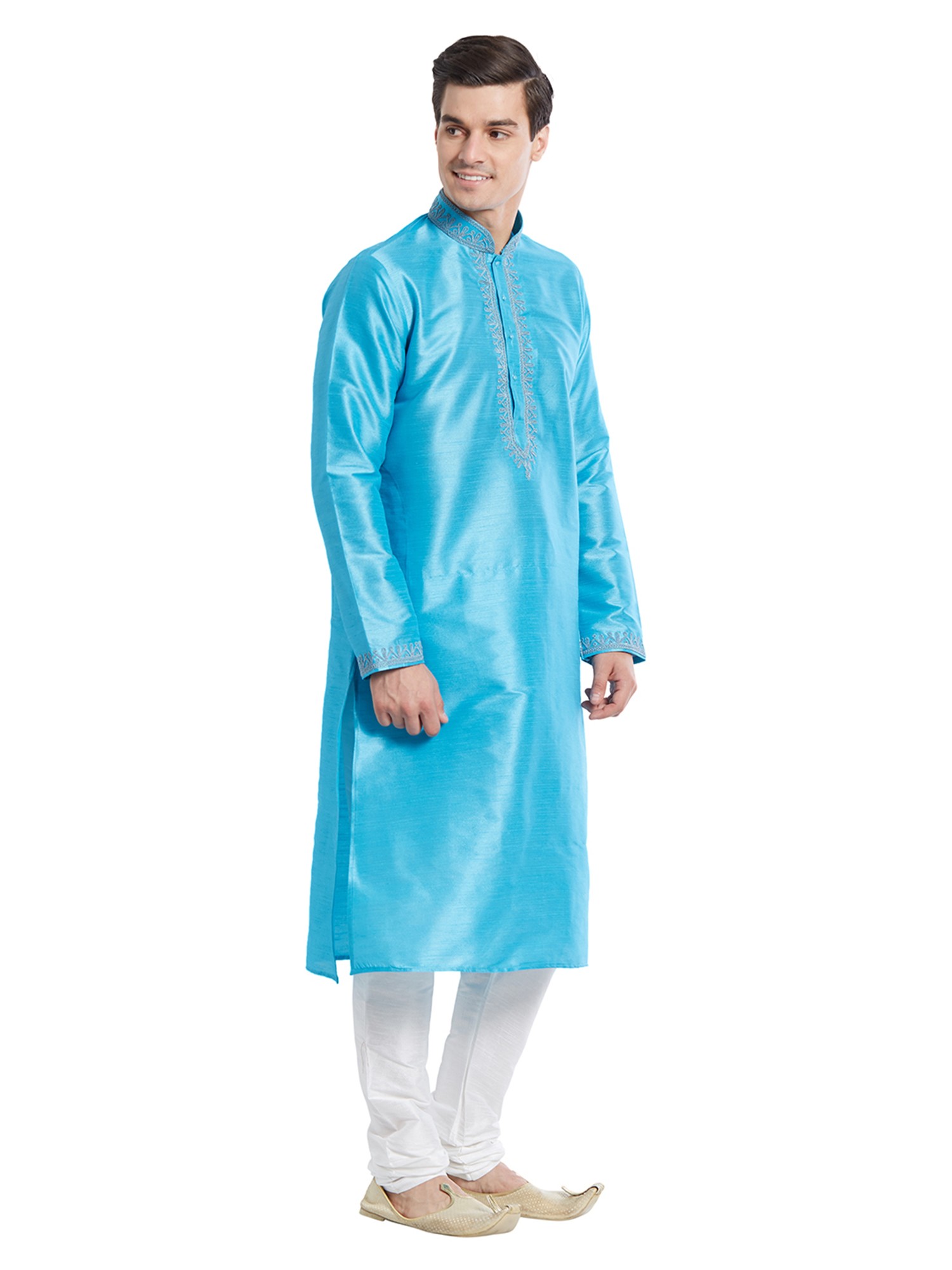 To preserve the exquisite beauty of this piece, we recommend gentle hand washing or dry cleaning. Proper care will ensure the art silk retains its luxurious feel and the embroidery its intricate detail for years to come. You are investing in a garment that promises lasting style and the ability to create cherished memories season after season.