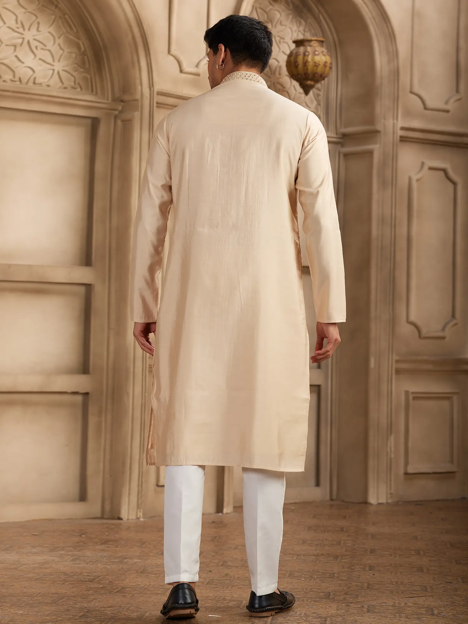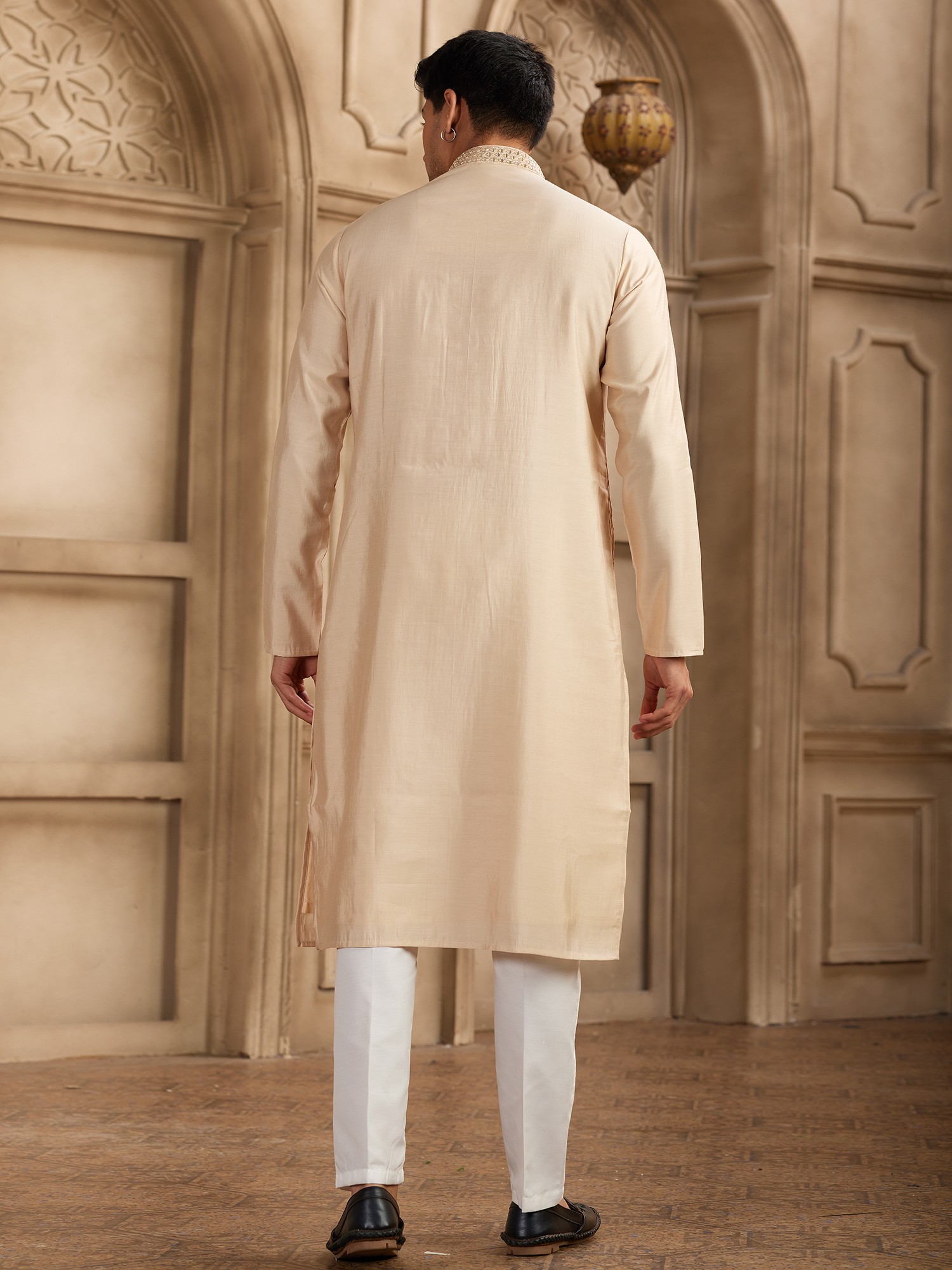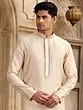 Wedding Kurta Pajama Set with Embroidered Collar and Jacquard Woven Paan Leaves