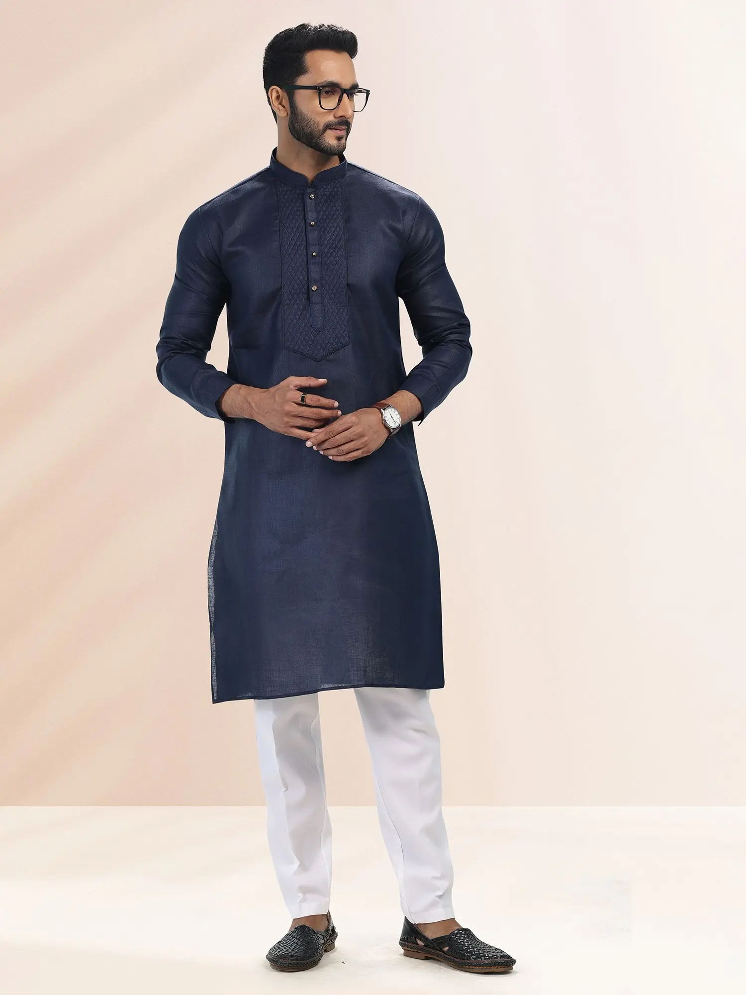 Crafted from a blend of comfortable cotton and elegant art silk for a refined look and feel.