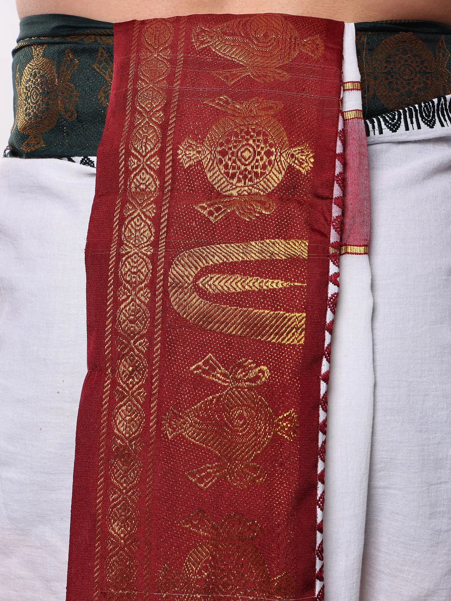 Dhoti and Angavastram set with Golden Woven Paisley on Border