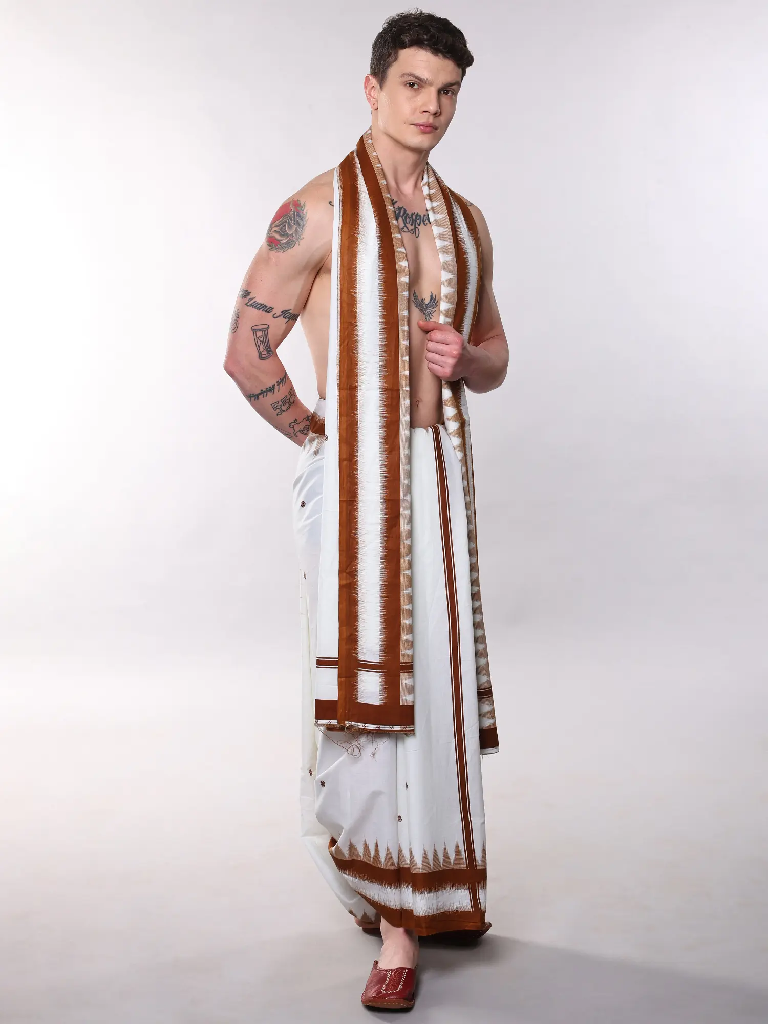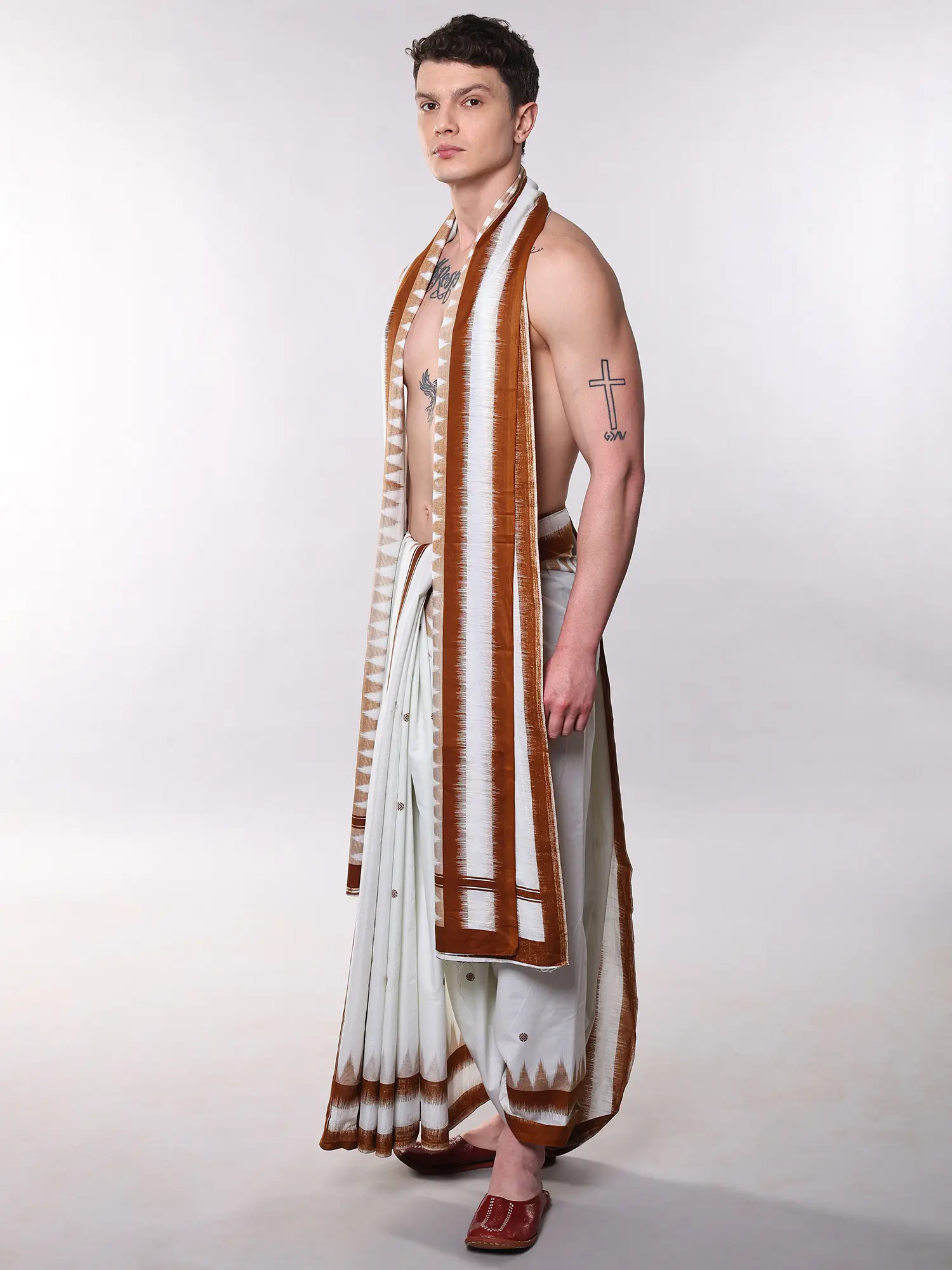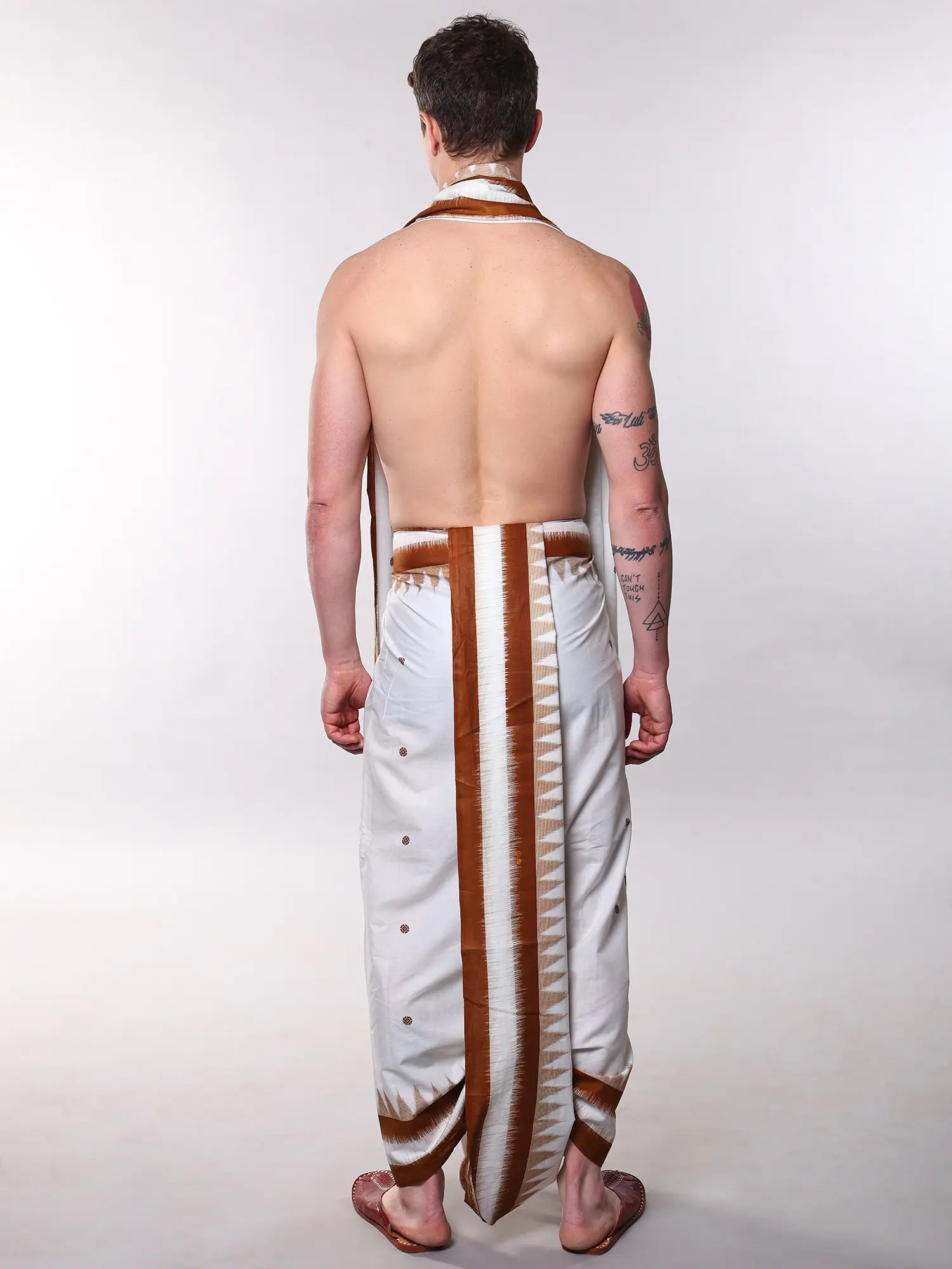 Imagine gracing traditional ceremonies, festive gatherings, or even a sophisticated evening soiree with this ensemble. It's equally suited for moments of quiet contemplation or as a distinguished statement for cultural events. The generous dimensions of both the dhoti and the Angavastram allow for graceful draping that complements any stature.