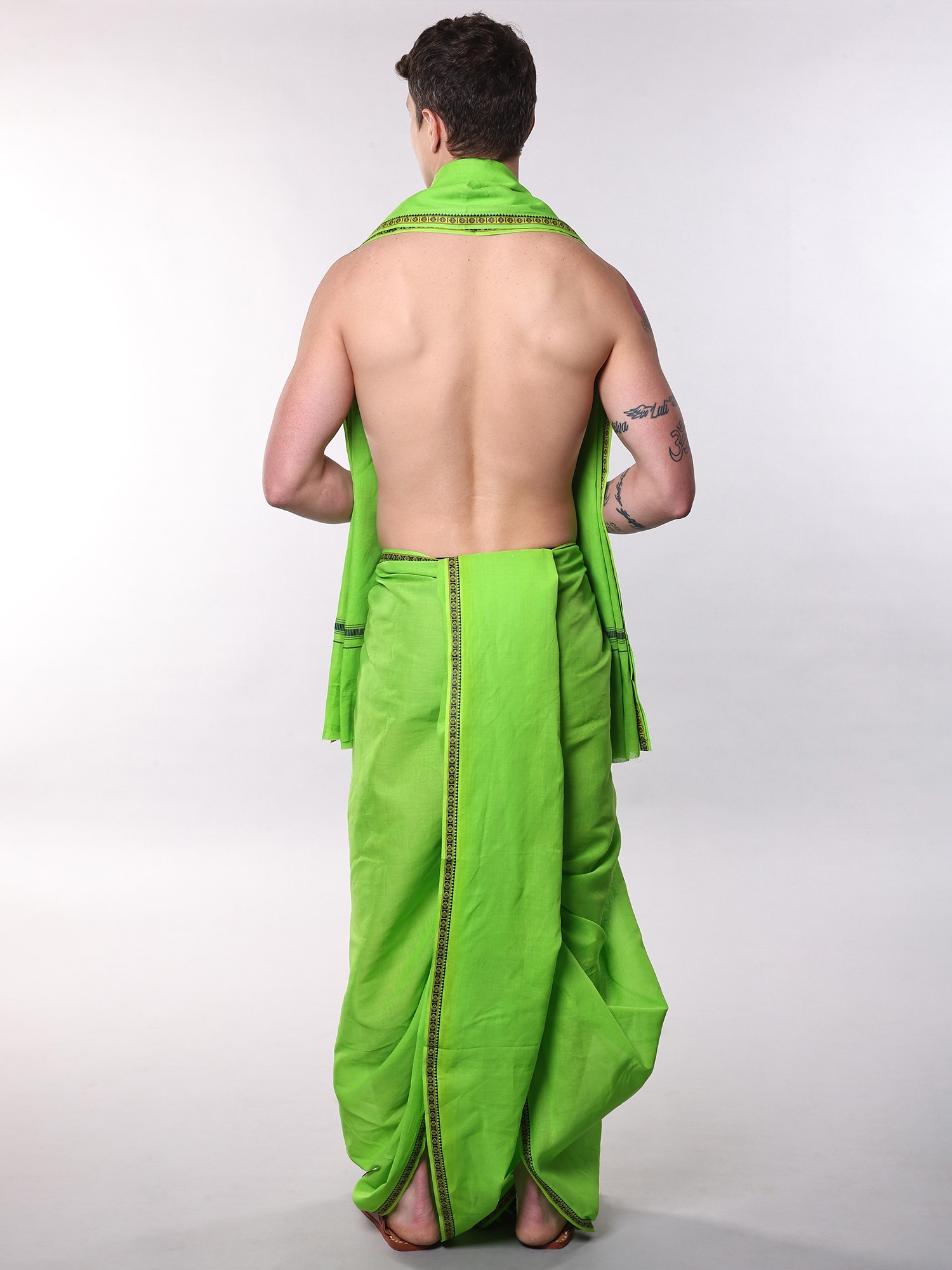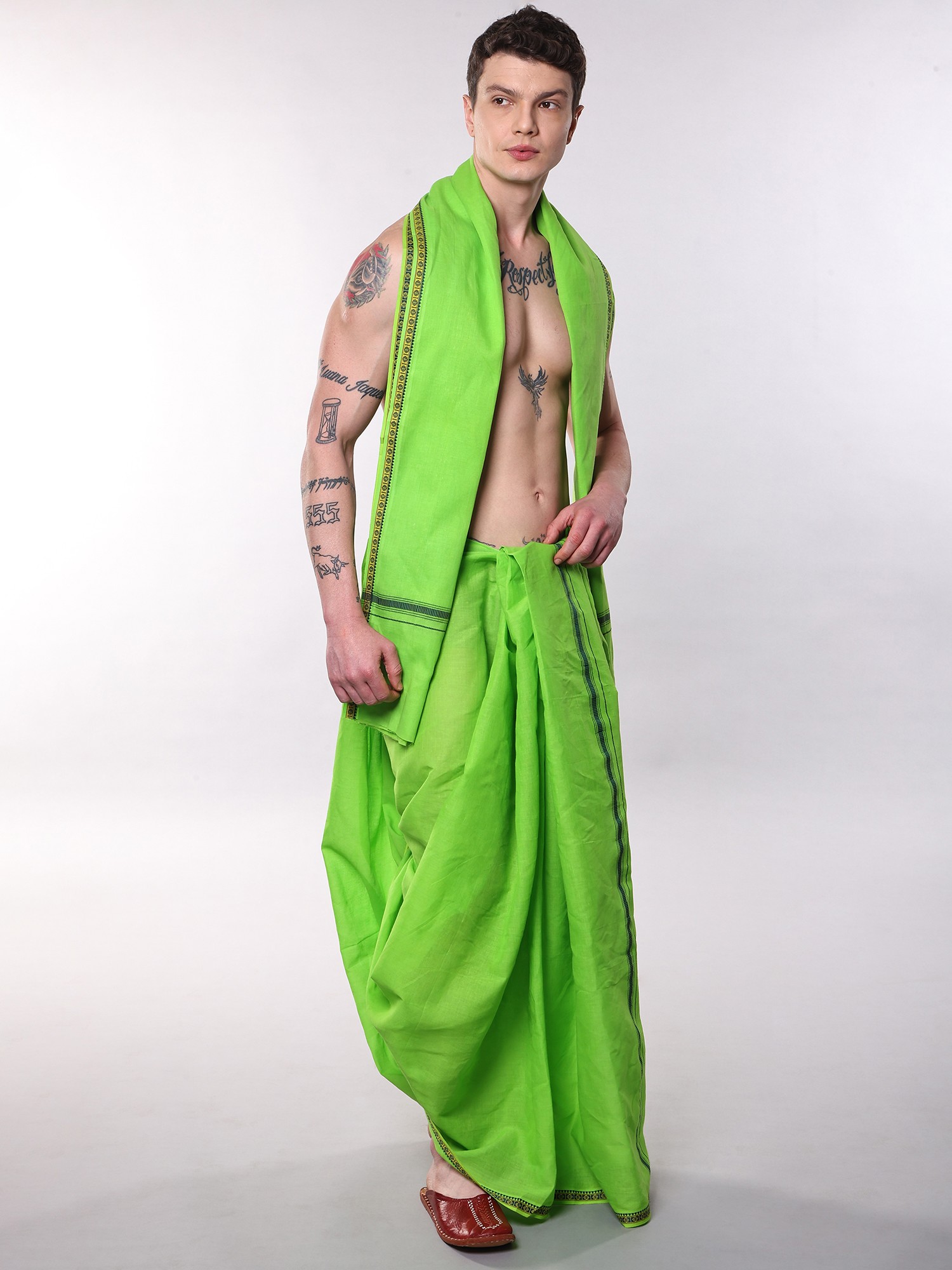 Traditional Cotton Dhoti and Angavastram Ensemble with Zari Border