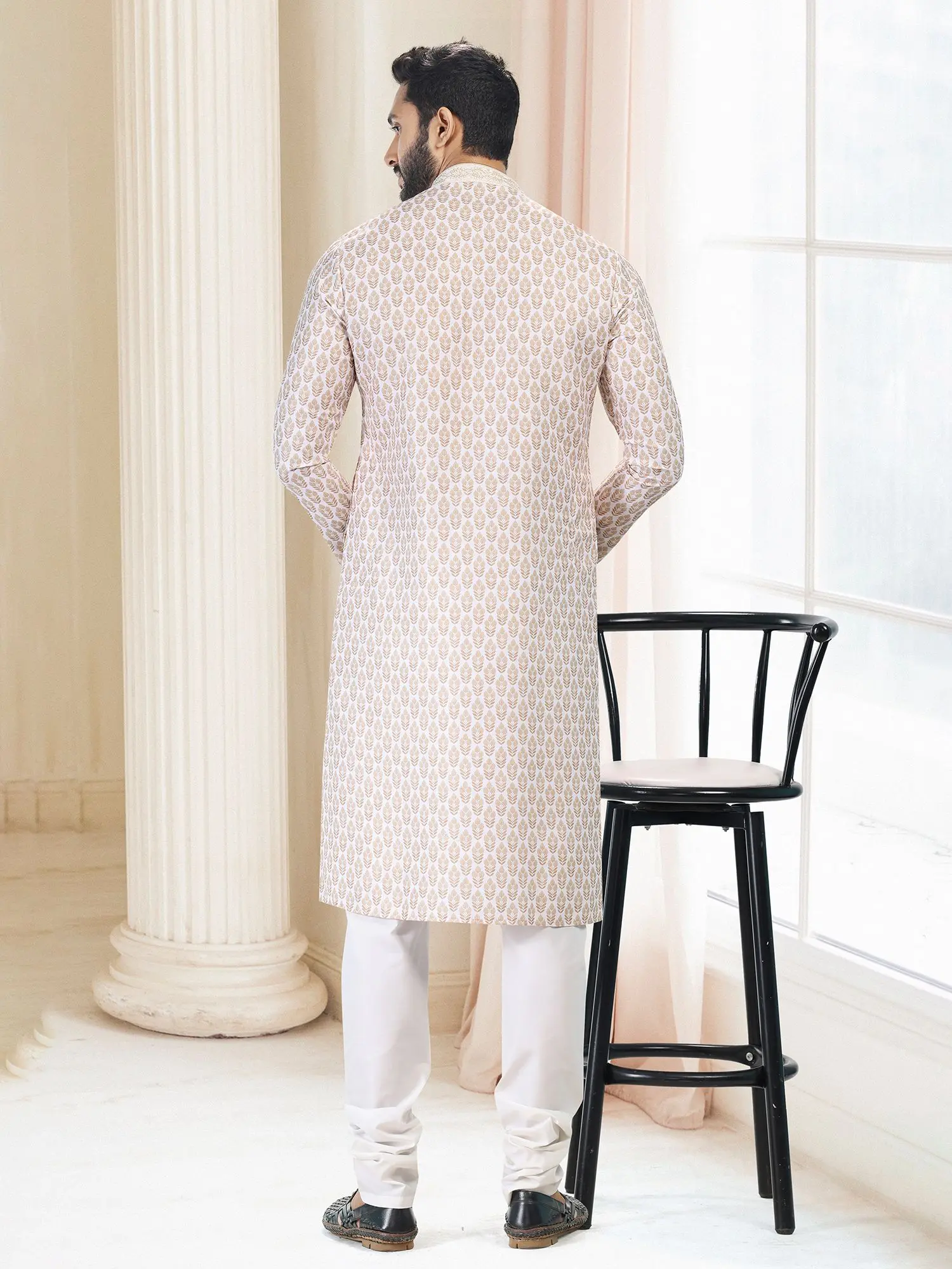 Drawing inspiration from centuries of rich cultural heritage, this attire embodies the spirit of traditional Indian celebratory wear. It’s a modern interpretation of a classic silhouette, designed for the contemporary gentleman who values his roots and appreciates heritage. This garment connects you to a legacy of celebratory fashion.