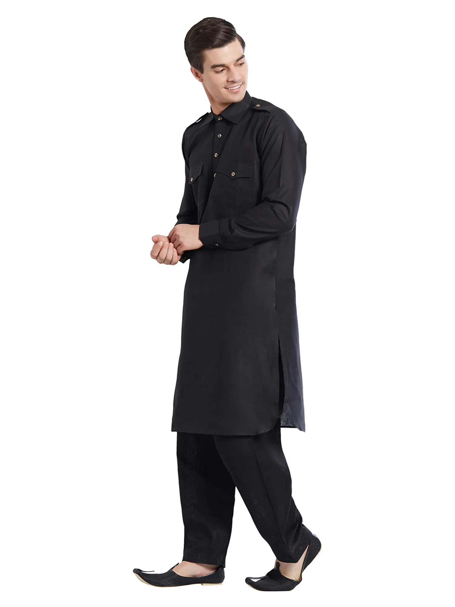 Plain Pathani Kurta Salwar Set with Piping