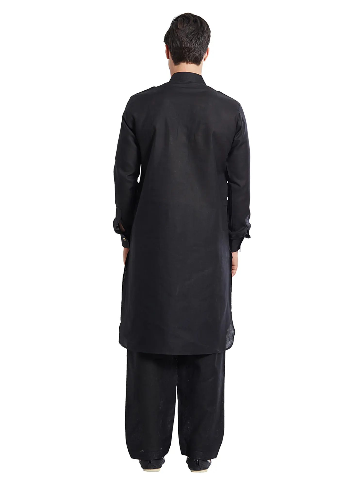 Plain Pathani Kurta Salwar with Thread Embroidery on Neck