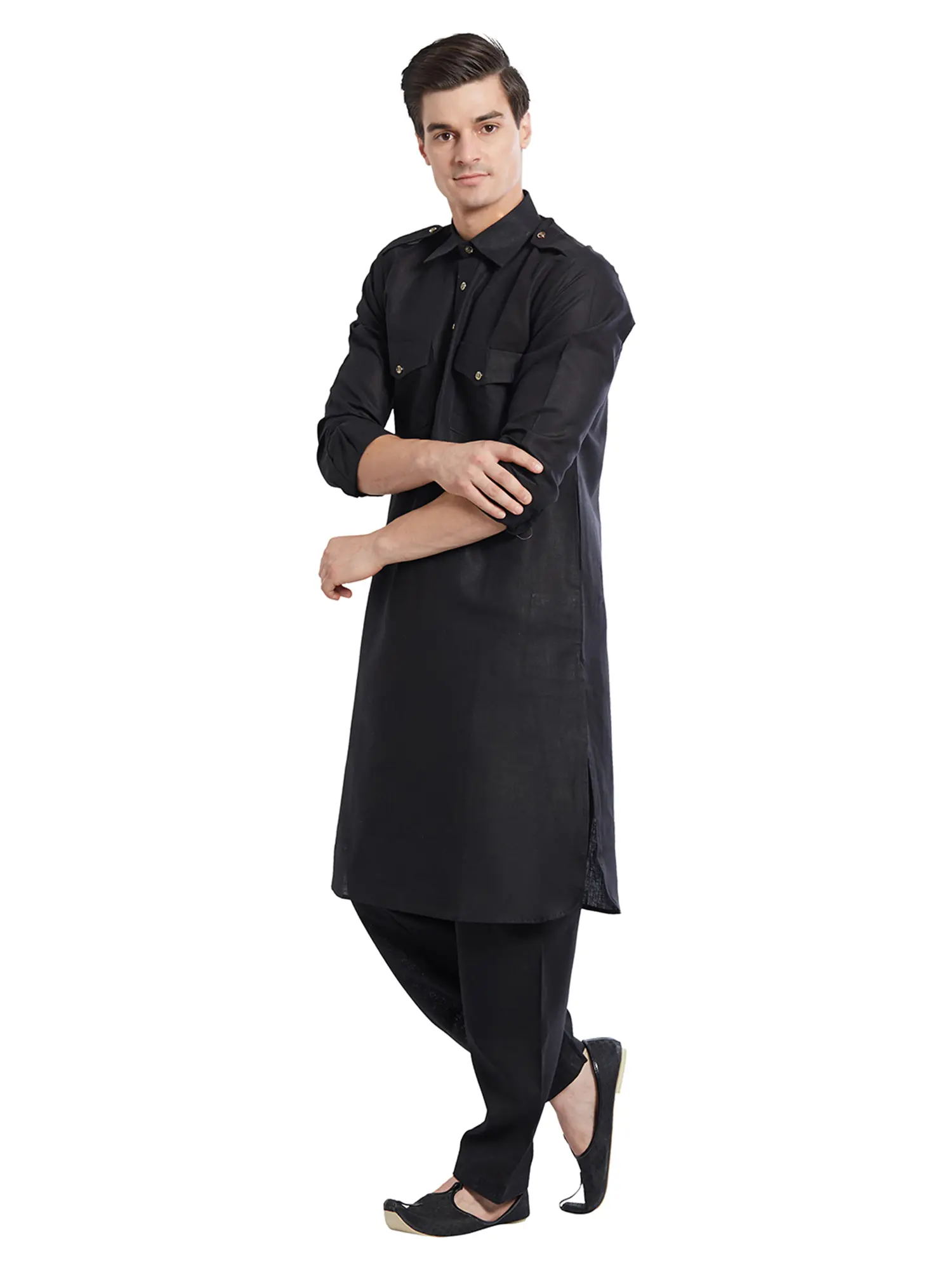 Plain Pathani Kurta Salwar Set with Piping-work