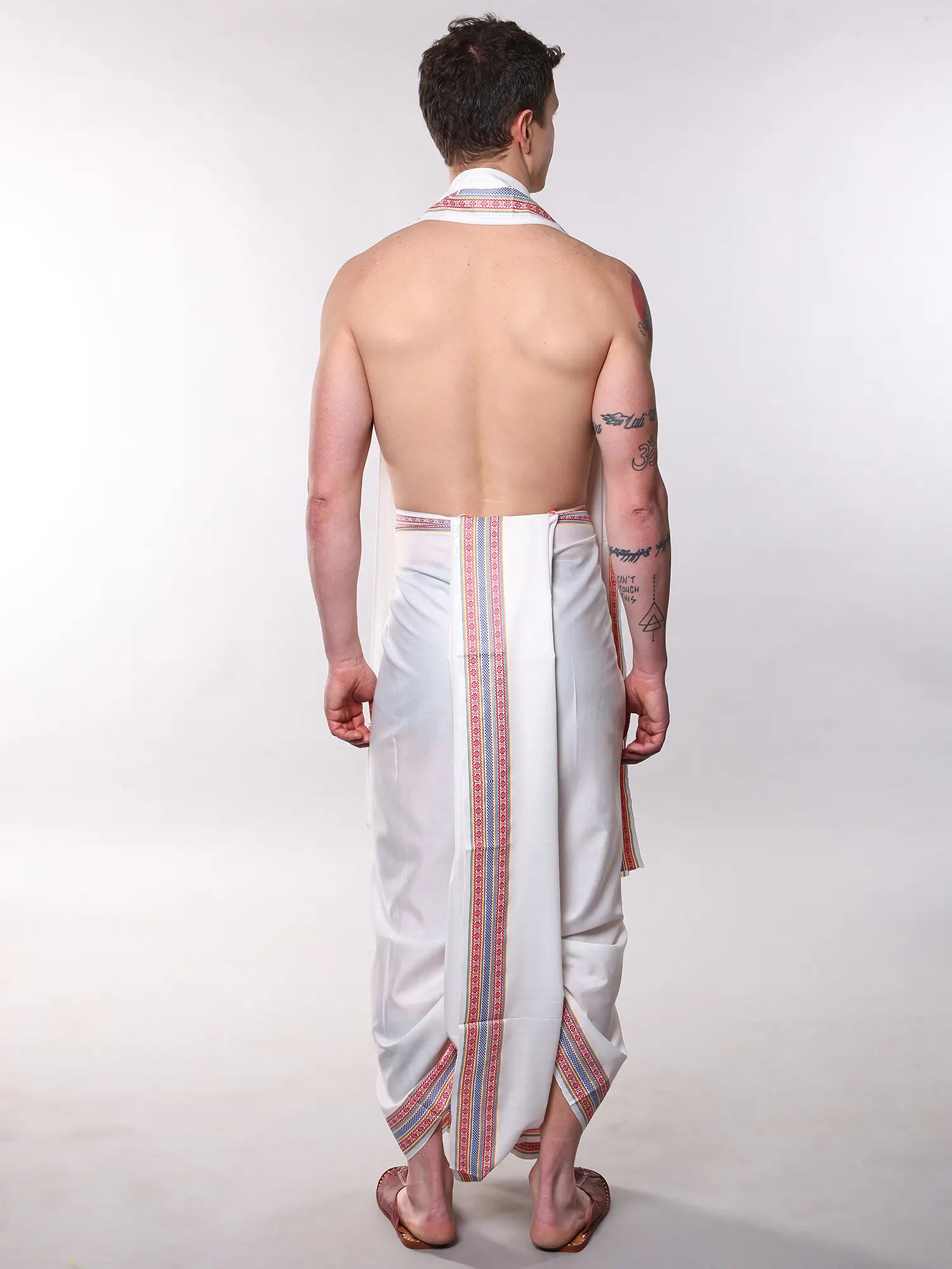 The dhoti is a substantial 176 inches long by 43 inches wide, ensuring a traditional fit.