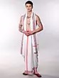Features a white dhoti and angavastram set with a distinctive Rudraksha motif border.