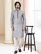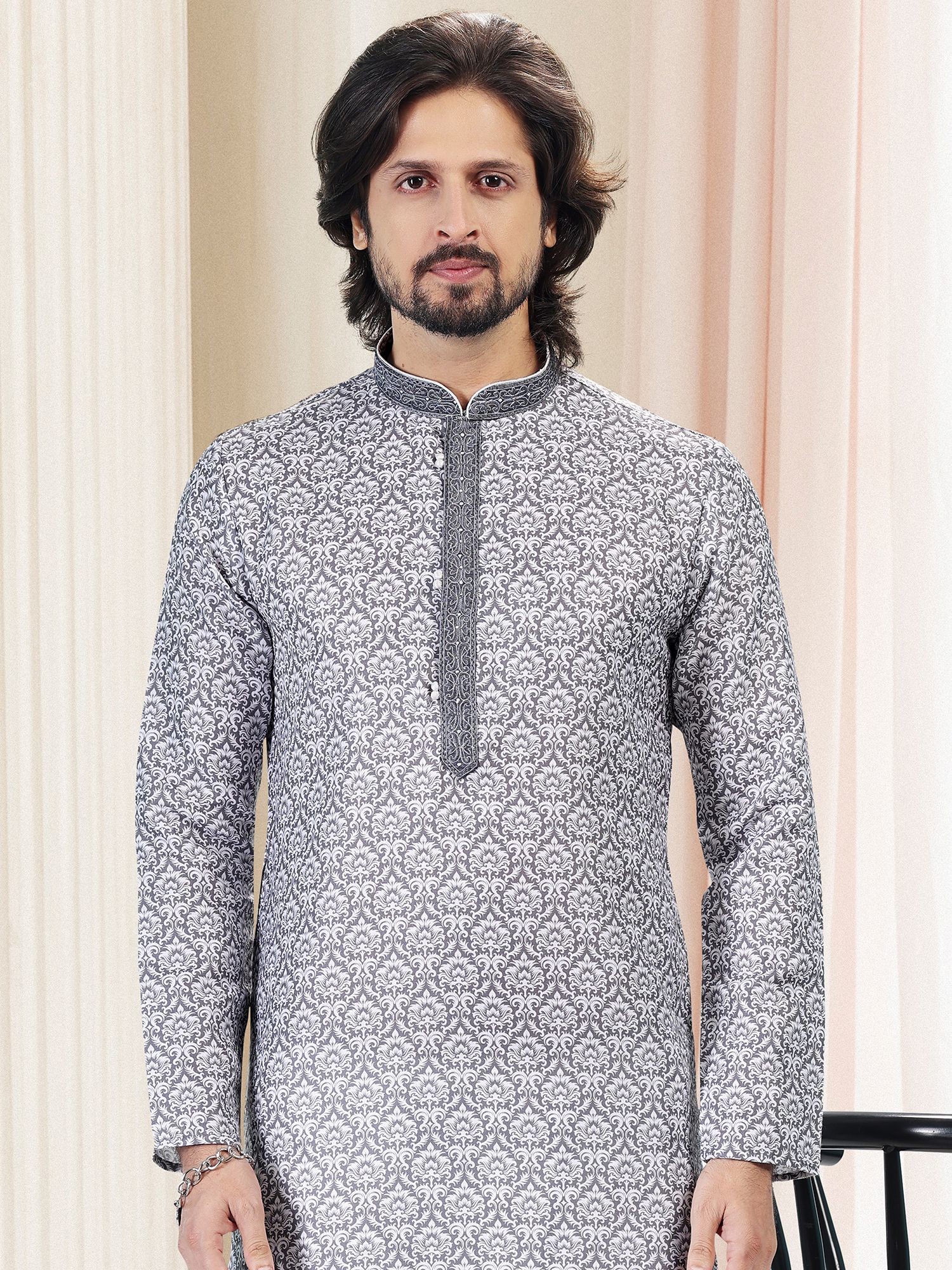 Elegant Brocade Kurta Pajama Set with Thread and Zari Work on Collar-Placket