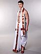 Authentic white cotton dhoti and angavastram set, perfect for traditional ceremonies and events.