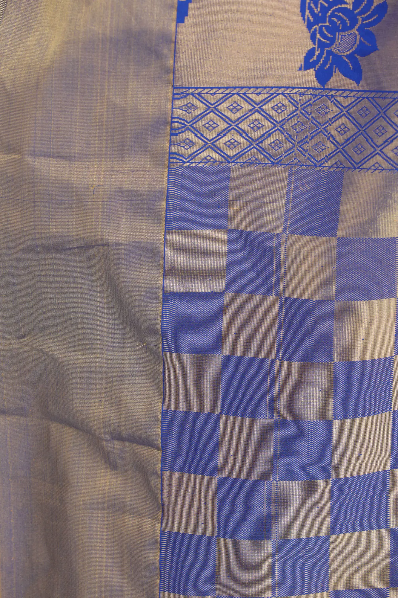 Sunset-Gold Floral Pattern Pure Silk Saree from Bangalore with Zari Weave