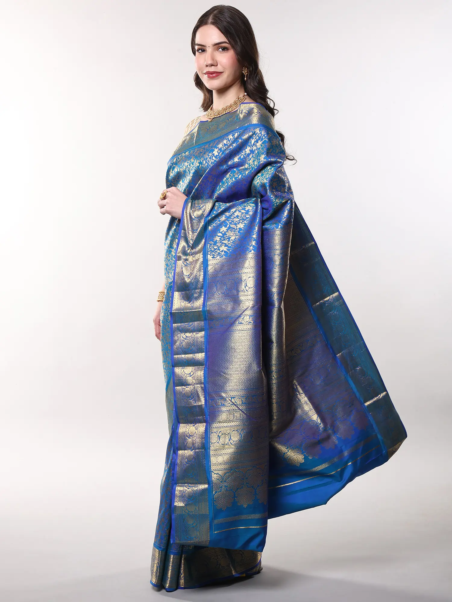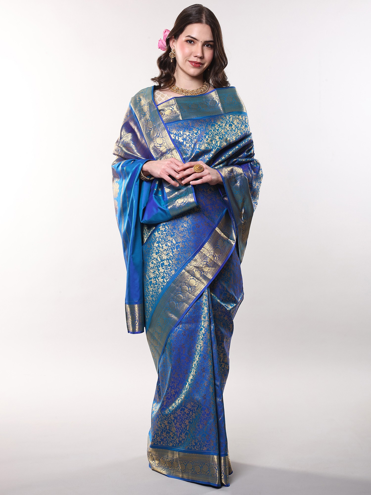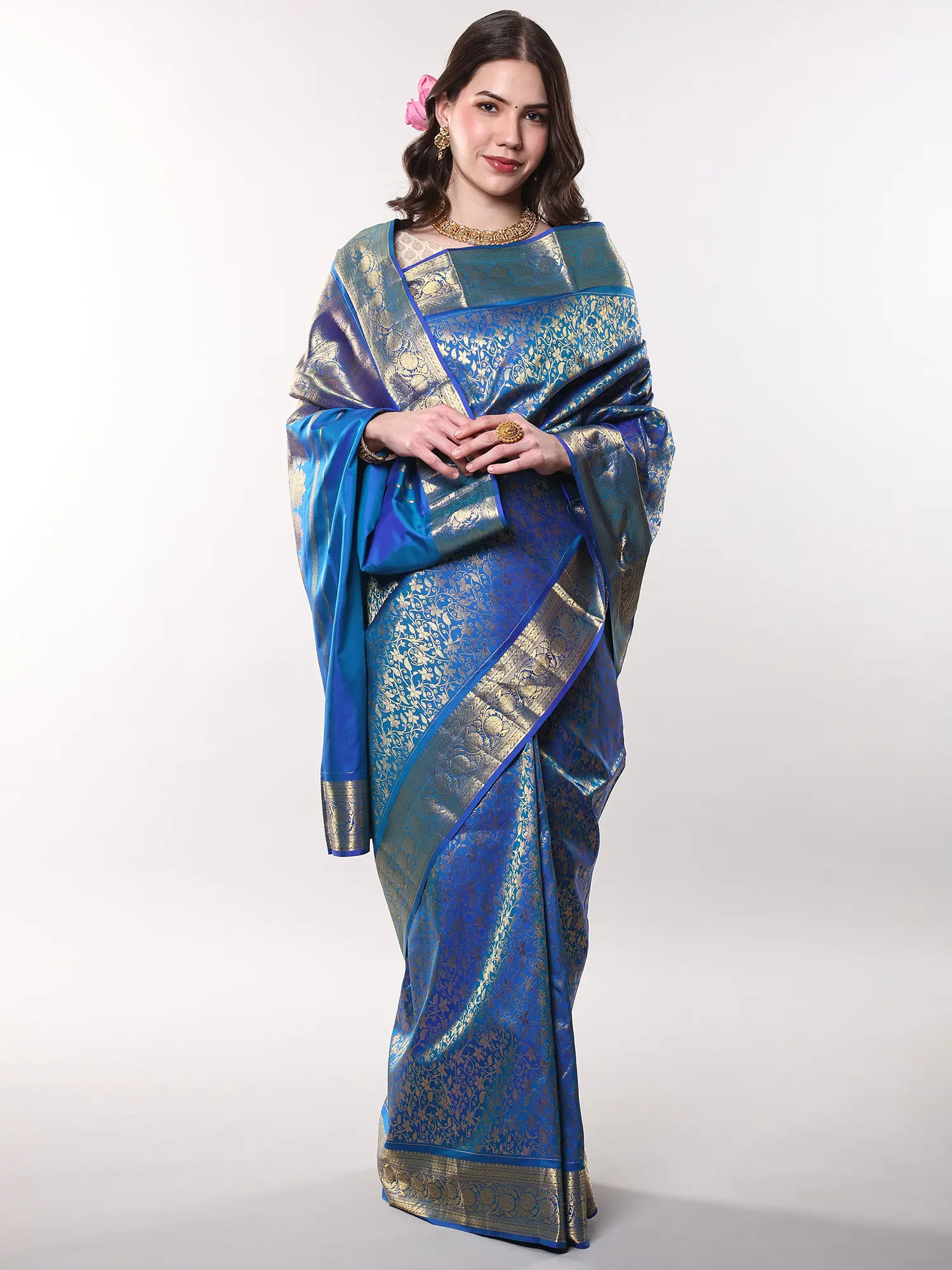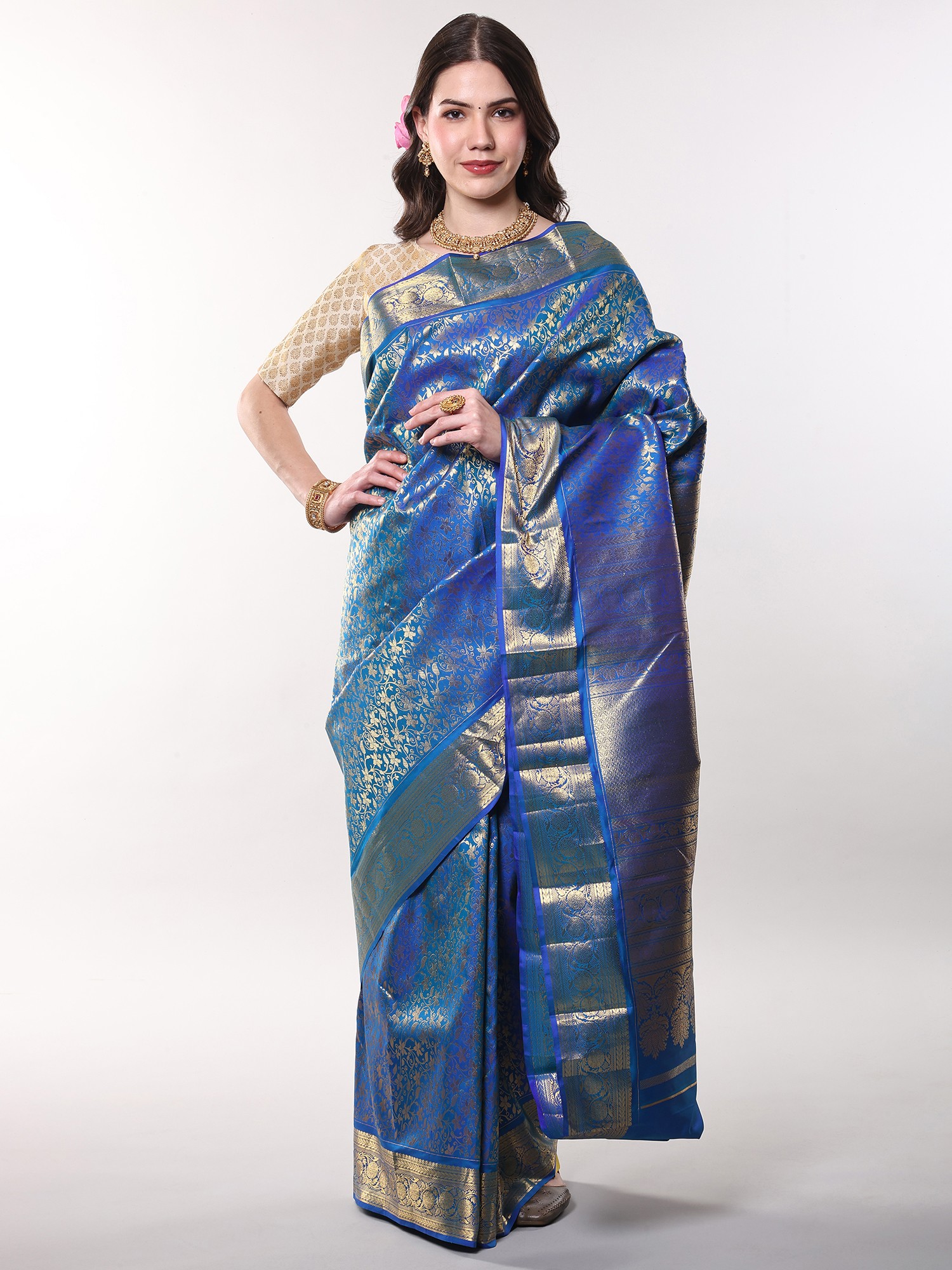 Imagine gracing a grand wedding, an important festival, or an elegant evening soirée enveloped in this exquisite silk. It’s designed for the woman who understands the power of understated luxury and appreciates the art of fine dressing. You can effortlessly pair it with traditional gold jewelry to enhance its inherent splendor, creating a look that is both memorable and deeply personal.
