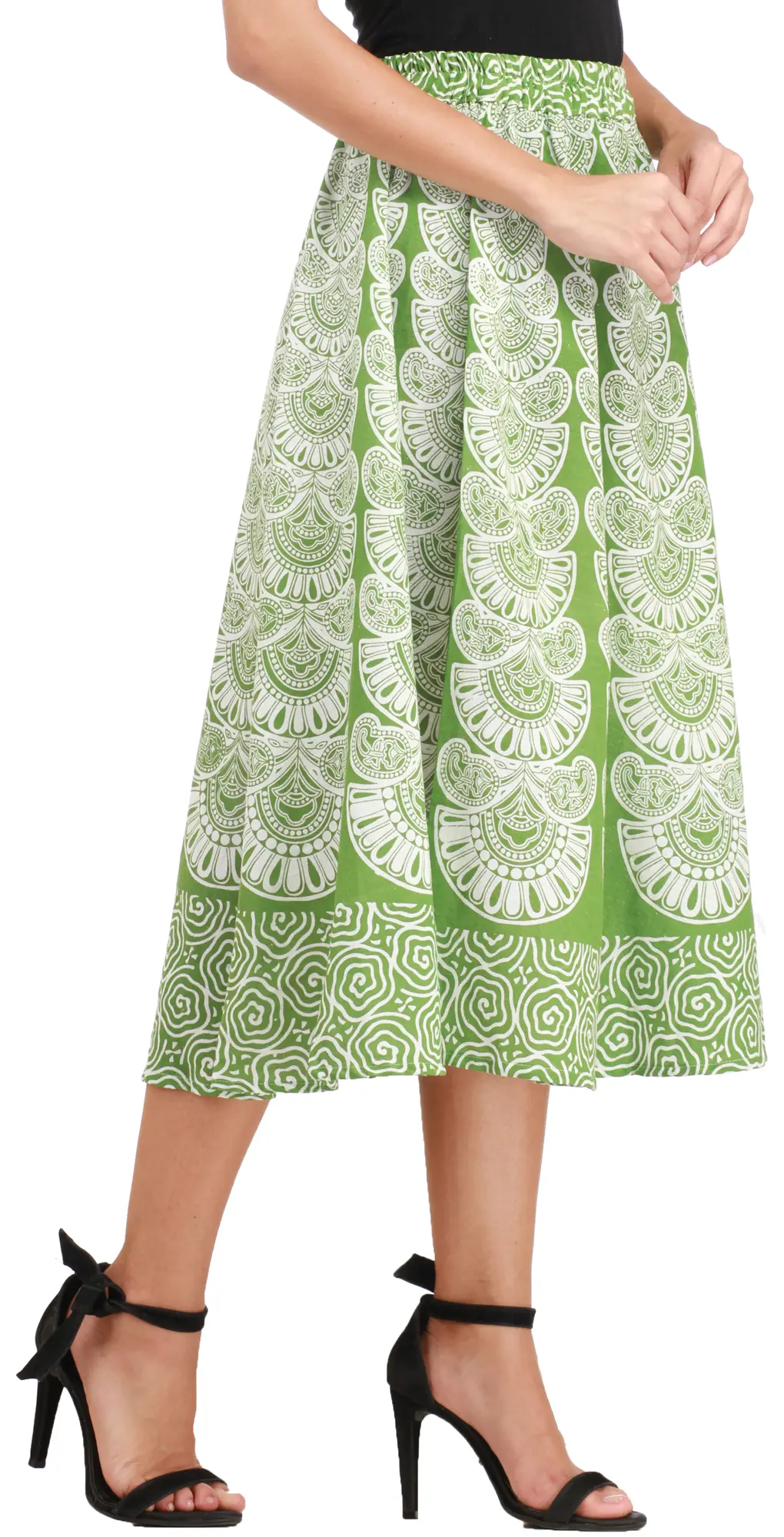 This Midi-Skirt from Pilkhuwa with Block Printed Motifs embodies beauty and comfort in equal measure. The soft fabric ensures a comfortable fit while allowing freedom of movement. The block-printed motifs add a touch of artisanal charm, infusing the skirt with a sense of tradition and heritage.